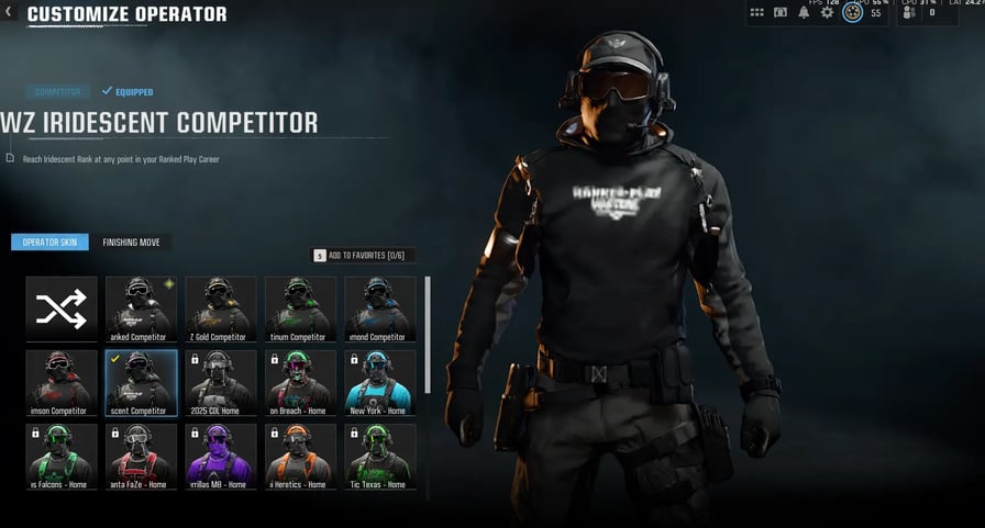 Kasama sa pag-unlad ng account ang mga blueprint ng armas, mga operator skin, at mga gantimpalang battle pass. Ang pag-unlock ng Damascus o Obsidian camo ay nangangailangan ng libo-libong eliminasyon sa iba't ibang kategorya ng armas. Kinakailangan ng malawak na oras ng laro kada season para makumpleto ang battle pass.