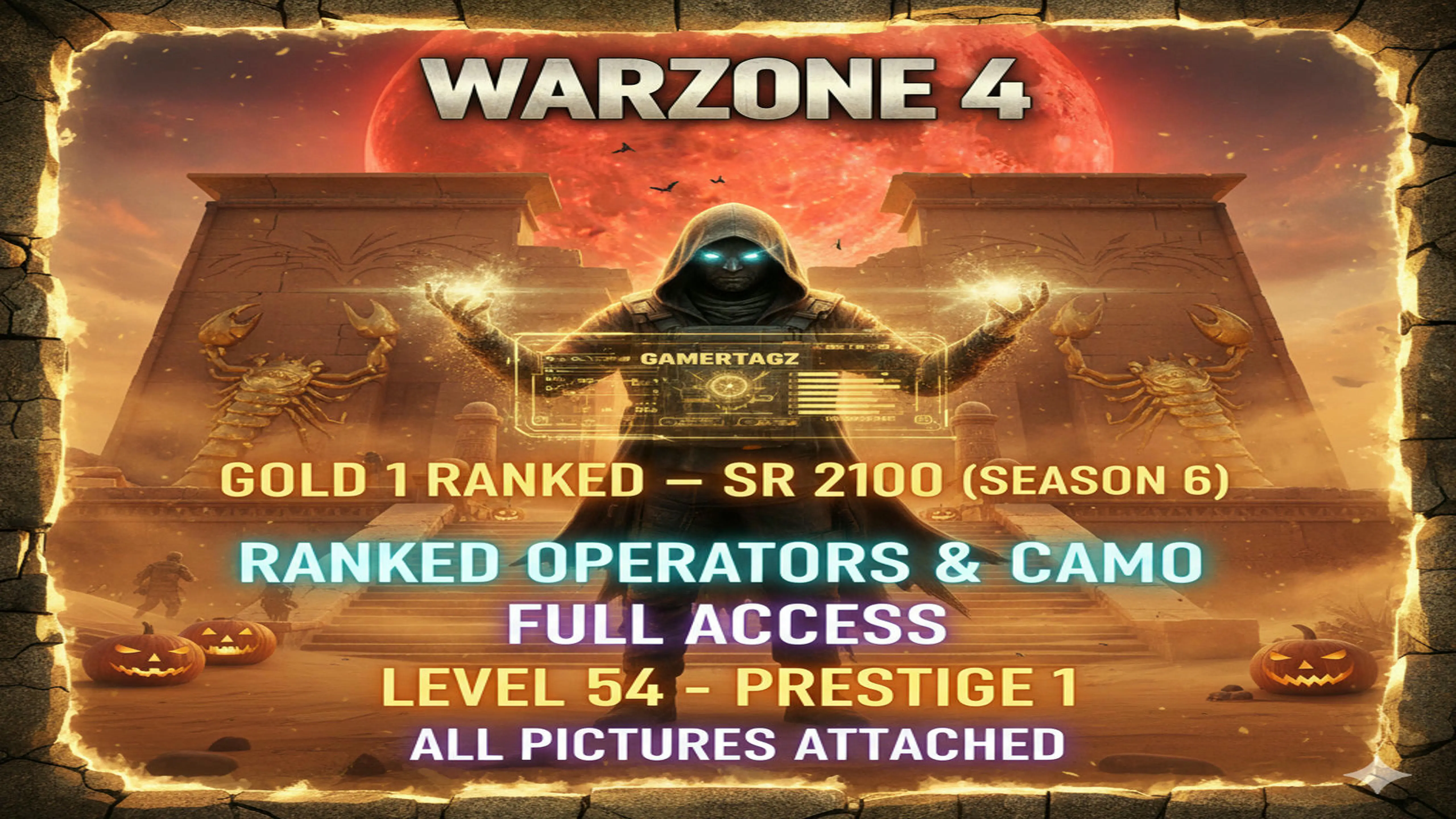 🐫 Warzone 4 🐫 Gold 1 Ranked SR 2100 ( Season 6 ) 🐫 Ranked Operators and Camo 🐫 Full Access 🐫 Level 54 Prestige 1 🐫 Handmade 🐫 Ranked Ready 🐫 Linkable: Steam 💻 • Battle.net 🖥 • PSN 🎮 • Xbox 🟢 #IDDu0y