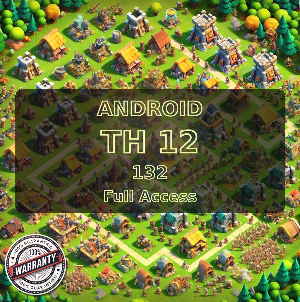132 XP+TH12+1 Stars+907 Gems Bk-50 Aq-50 Gw-20+War Stars 717+Builder Bas 8+IOS/ANDROID #LOT-161465