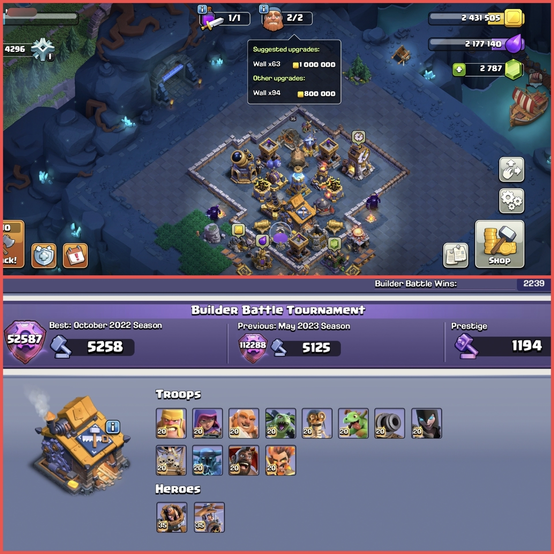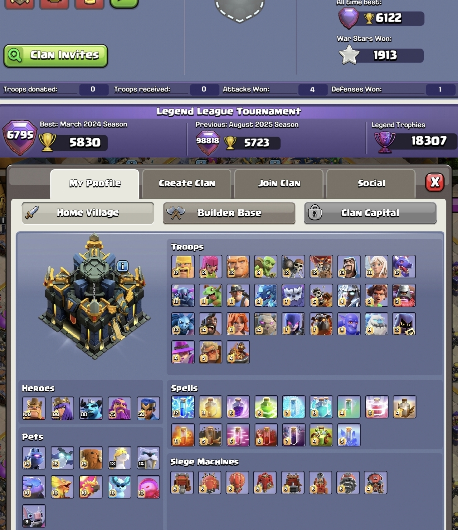*406 V.High EXP : Extremely Rare ID* 🔥 99% Maxed TH 17 & BH {25 Max LvL Equipment 🎖️, Including 6 Epics 🌟} Good Hero Skins 🎭, NC Available 💯 | Safe ID 🔐 CJ254
