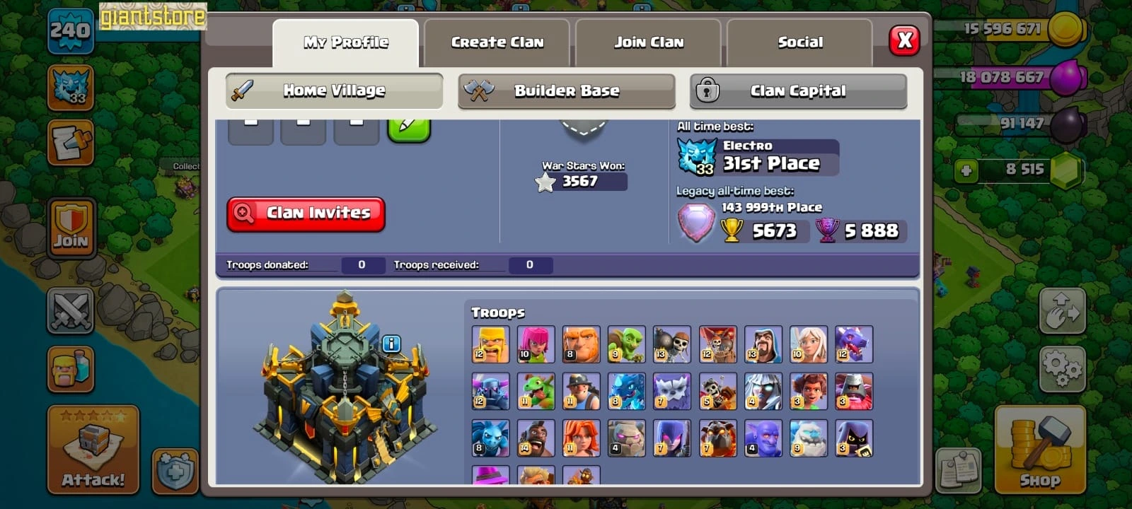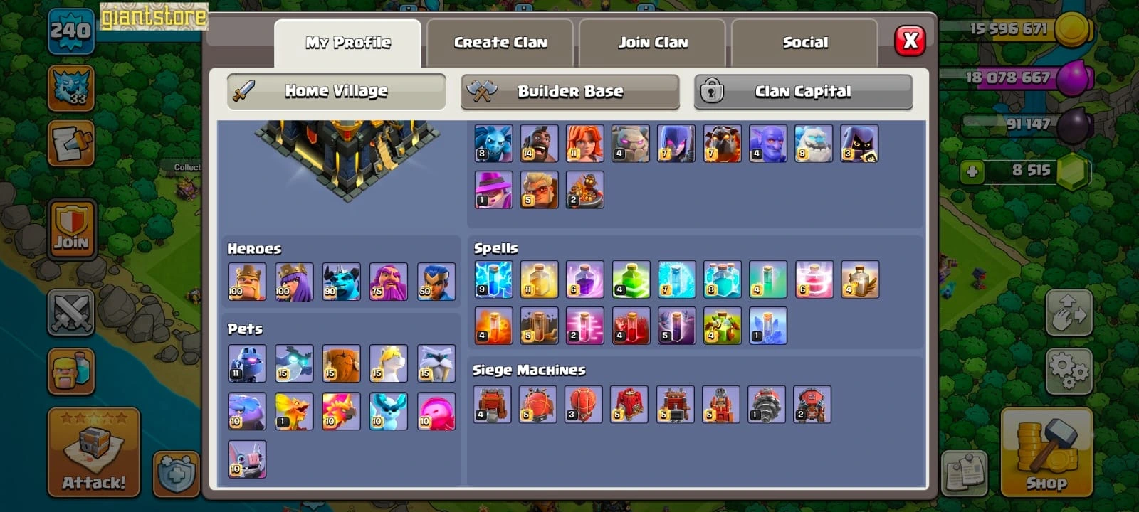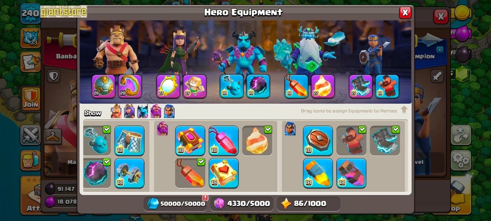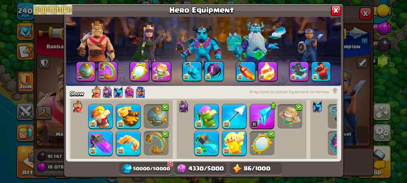 Best deal🔥TH 17 ALMOST MAX🔥max heroes🔥max pets☠️4 max epic equipment⚒️max builder base💎8500 gems⭐️473 cwl medal