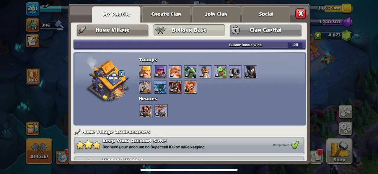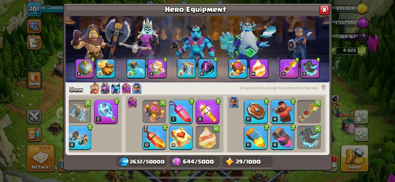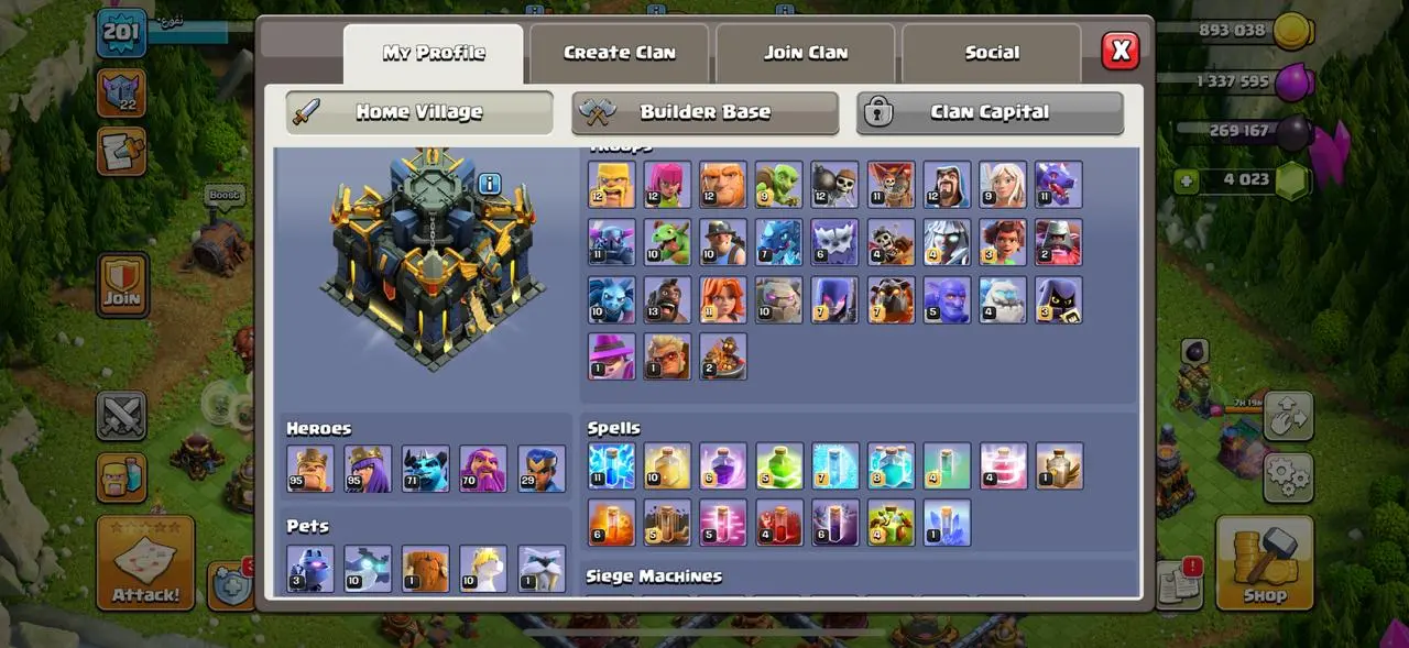 Big sale🔥Town hall 17 ex defense th 16🔥hero level 95,95,71,70,29🔥8 epic equipment🔥good troops🔥4023 gems🔥cheapets🔥🔥🔥🔥🔥