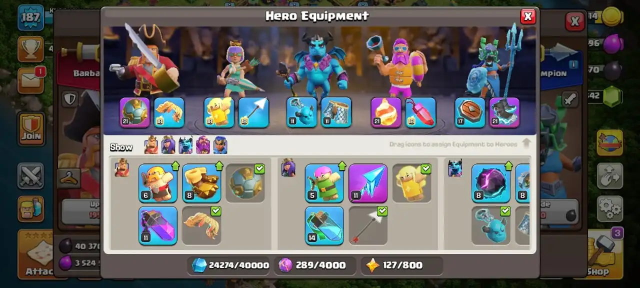 Cheapest🔥TH 14 MAX🔥max heroes☠️3 max epic equipment⚒️6 builder’s✅cn on✅7 heroes skin