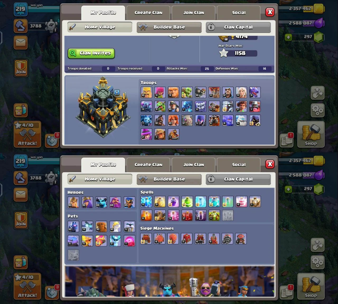 🔥GREAT MAX(220 XP) TH17⚡HEROS:-90/92/65/68/45⚡11 EPIC EQUIPMENT UNLOCK⚡HIGH LEVEL EQUIPMENT⚡800 LEAGUE MEDEL⚡GOOD UPGRADE DEFENSE⚡CHECK PHOTOS⚡INSTANT DELIVERY⚡