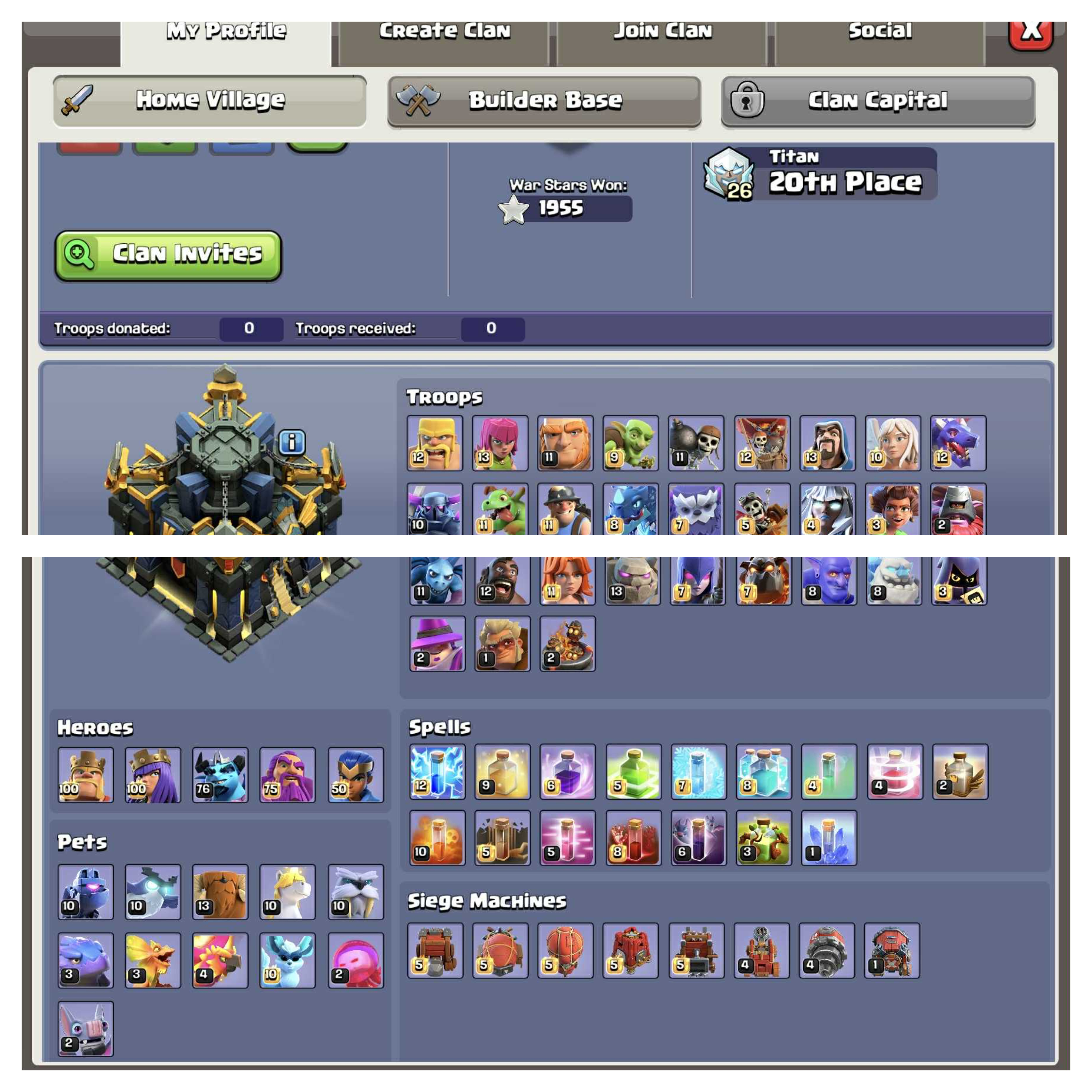 Level 238🌷TH 17 Near Max🌷6x Scenaries/36x Skins🌷4 Heroes Max