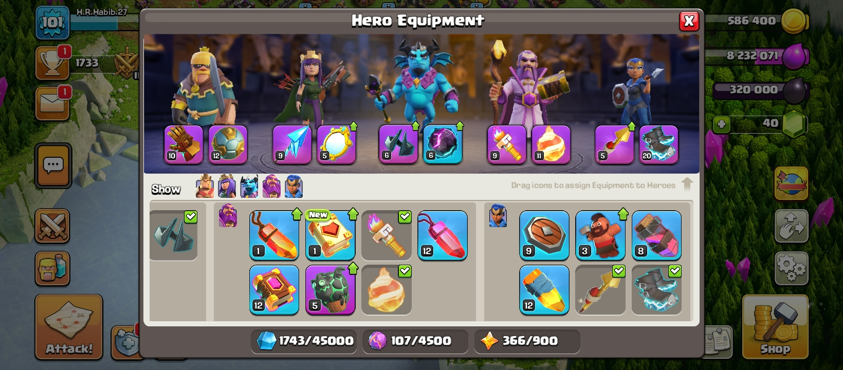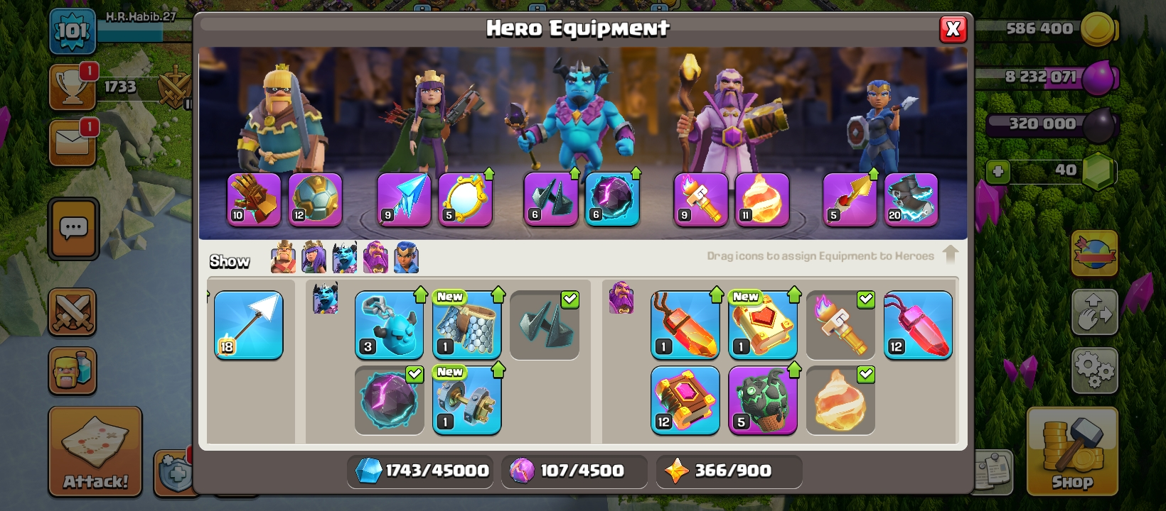 RARE 12X EQUIPMENT !! TH16 DONATION !! XP97 !! HEROS 31-31-40-12-21 !! NAME CHANGE FREE