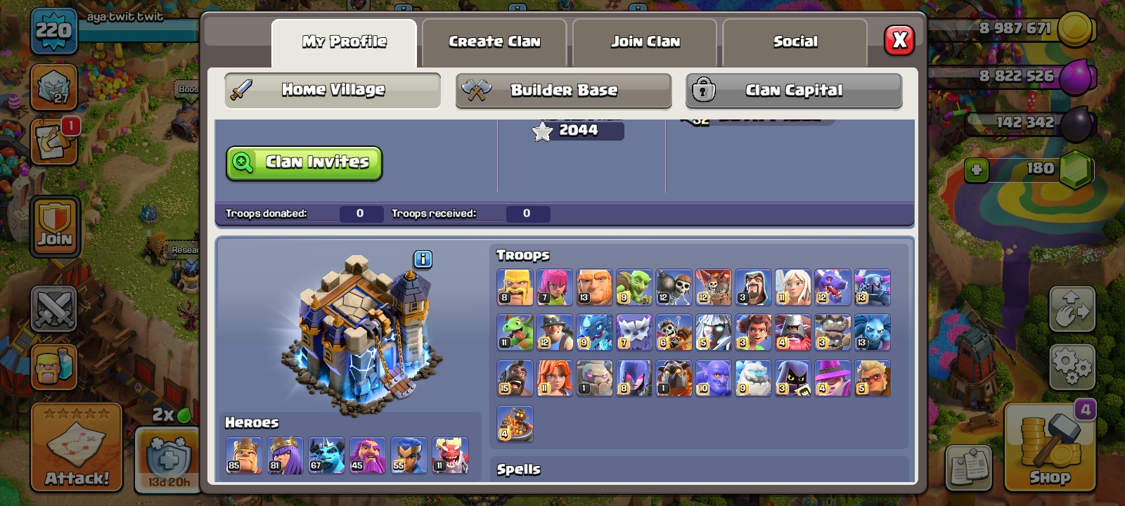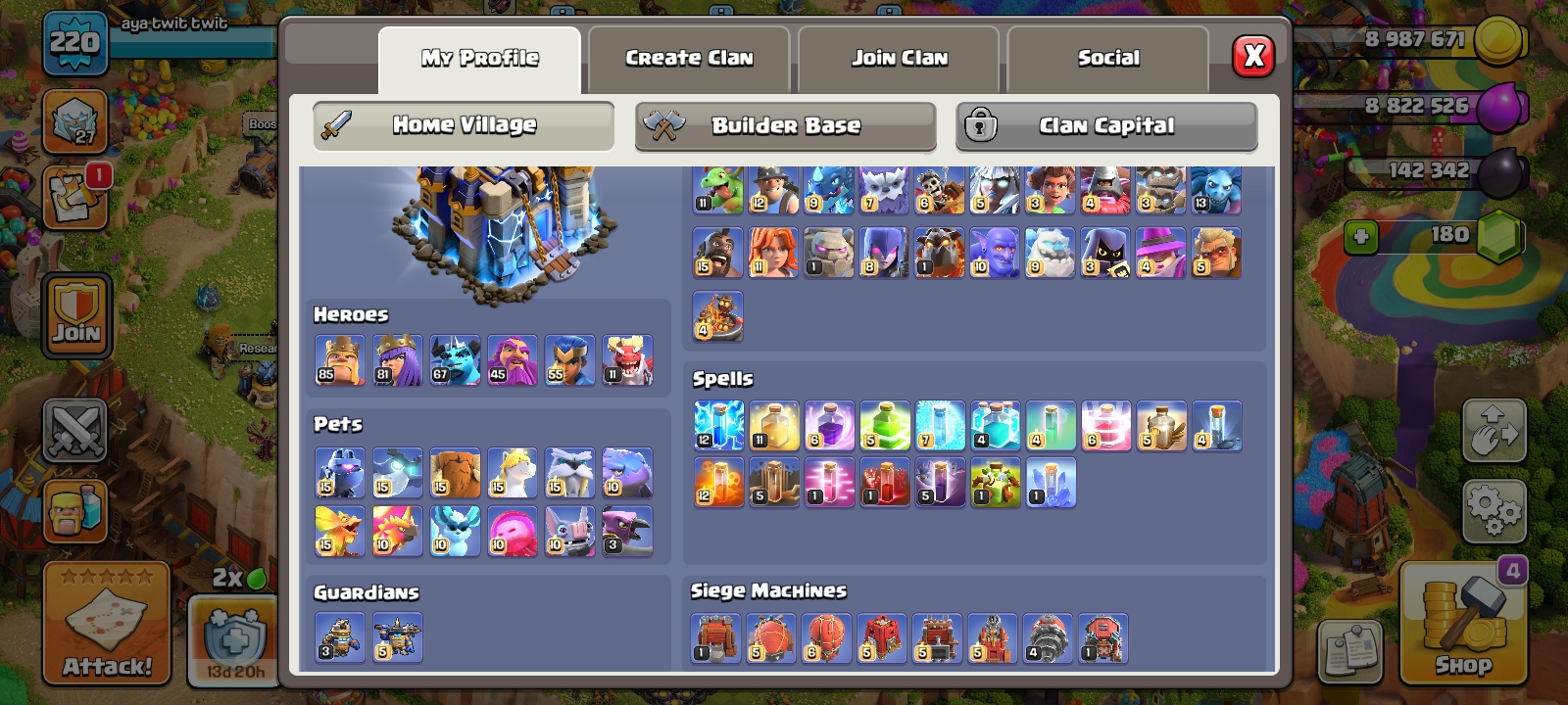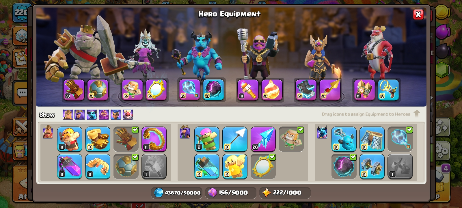 RARE☠️7 max epic equipment🔥TH 18 almost max🔥heroes level 85/81/67/45/55/11🔥max pets⚒️6 builder’s⚒️helper opened✅free name change