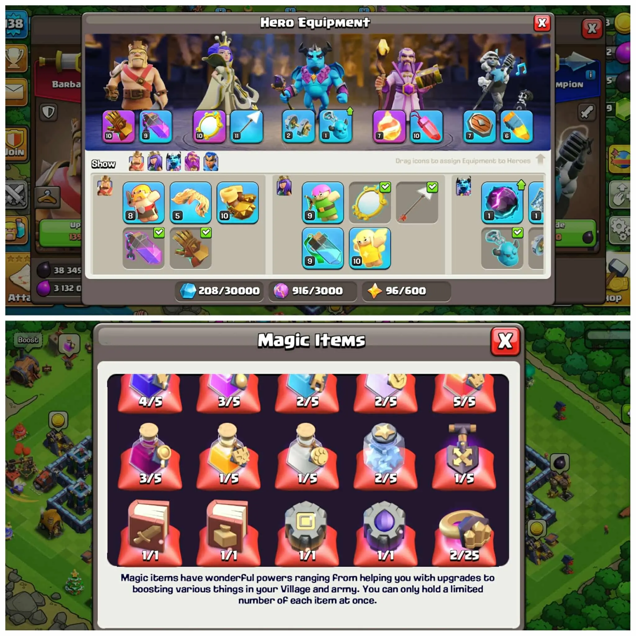 TH 13 ✅ALMOST 90%+ MAX🔥100% ALL WALL🌟Heros: 65/69/34/43/21🔥Good Equipment🌟Lots Of Magic items[FAST DELIVERY]