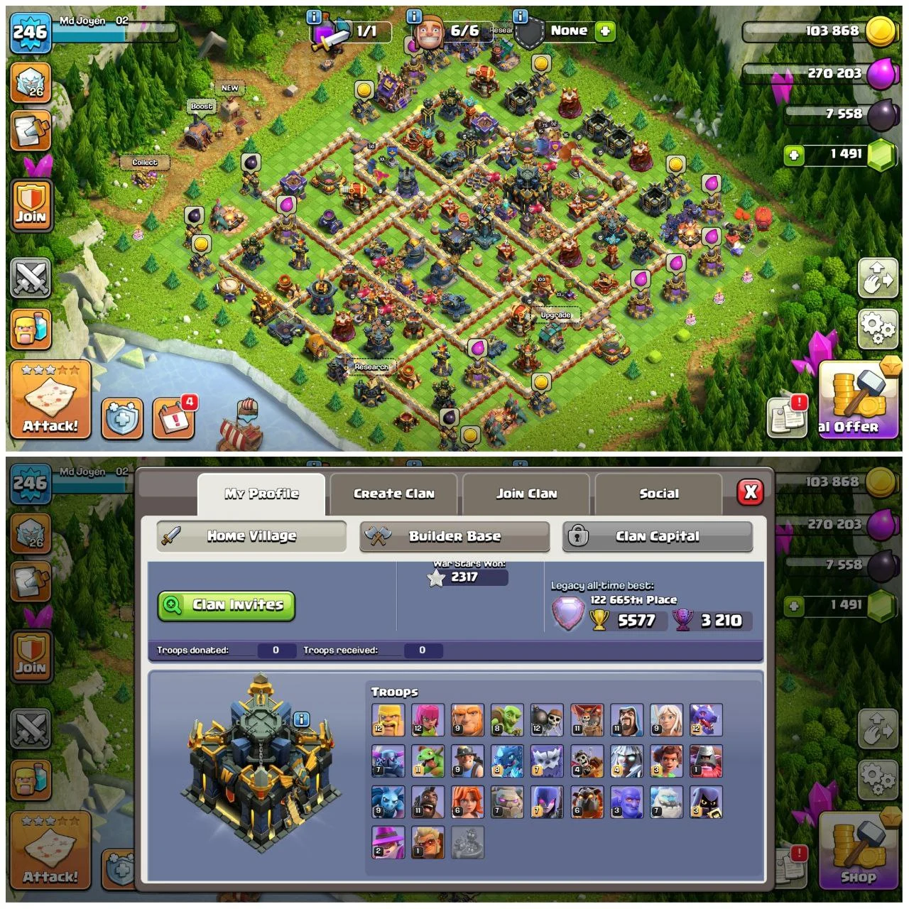🔥XP 246!TH 17 NEARLY MAX!HEROS:92-100-73-75-50!NC 500!NEAR MAX DEFANCE!LSTRONG TROOPS!MAX WALL!BEST DEAL!INSTANT DELIVERY