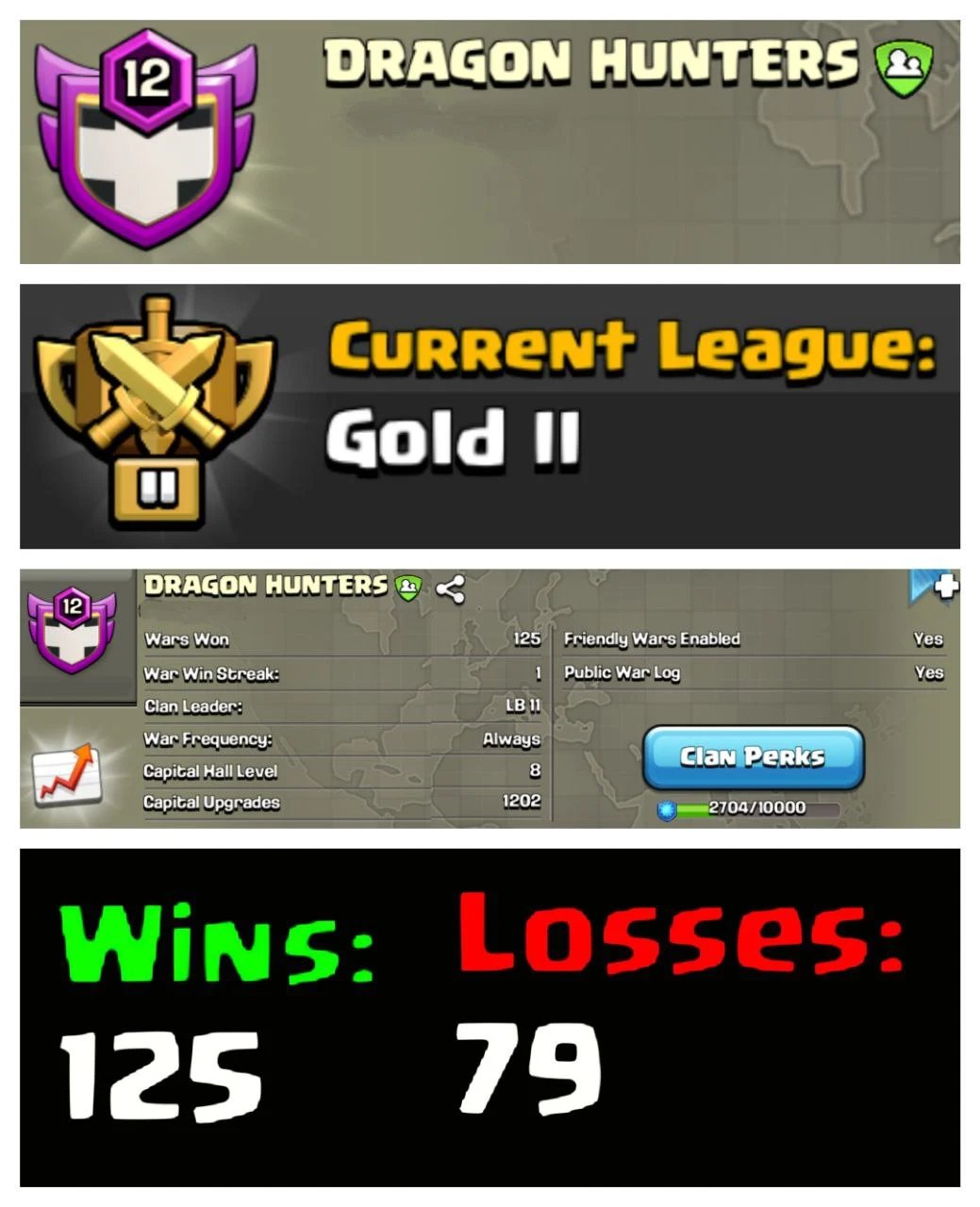 🍀GREAT DEAL🍀 ❤🔥OP LEVEL 12 ENGLISH CLAN 💢 NICE ENGLISH NAME : DRAGON HUNTERS 🌙 LEAUGE : GOLD 2 🌲 CLAN CAPITAL : 8 💀 WINS : 125 | LOSS : 79 🔥 BEST CLAN BUY NOW ⚡ FAST DELIVERY🚚