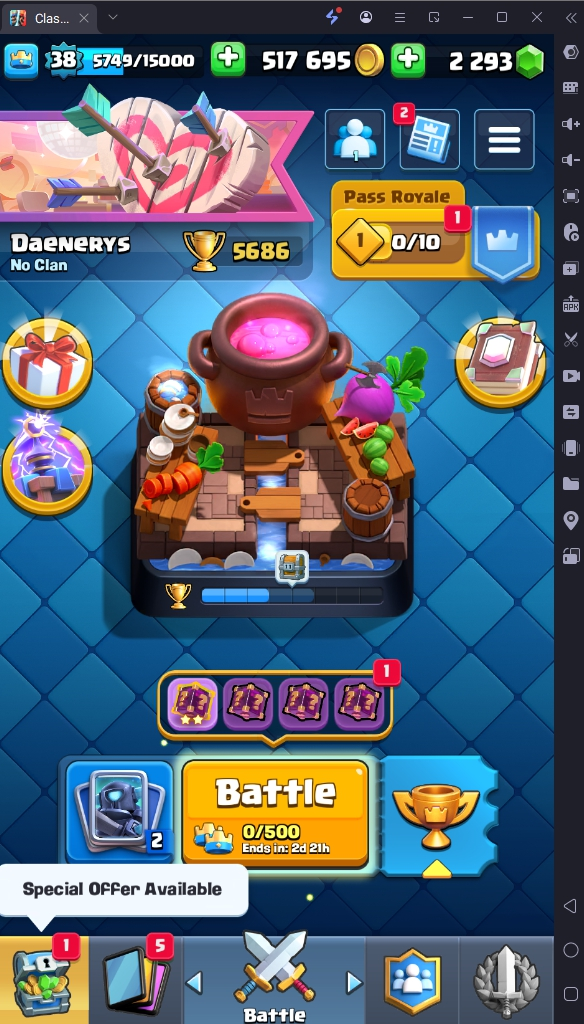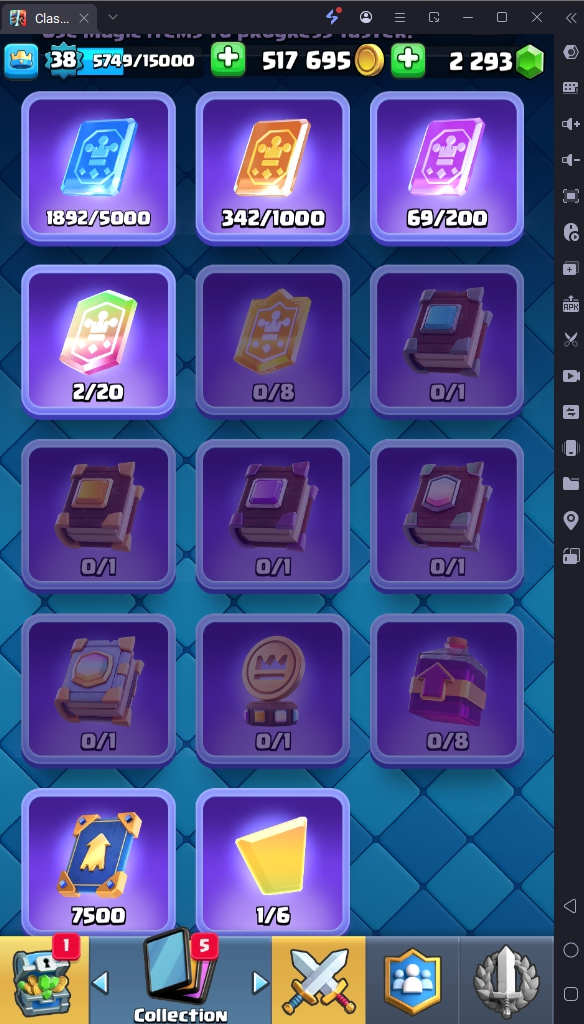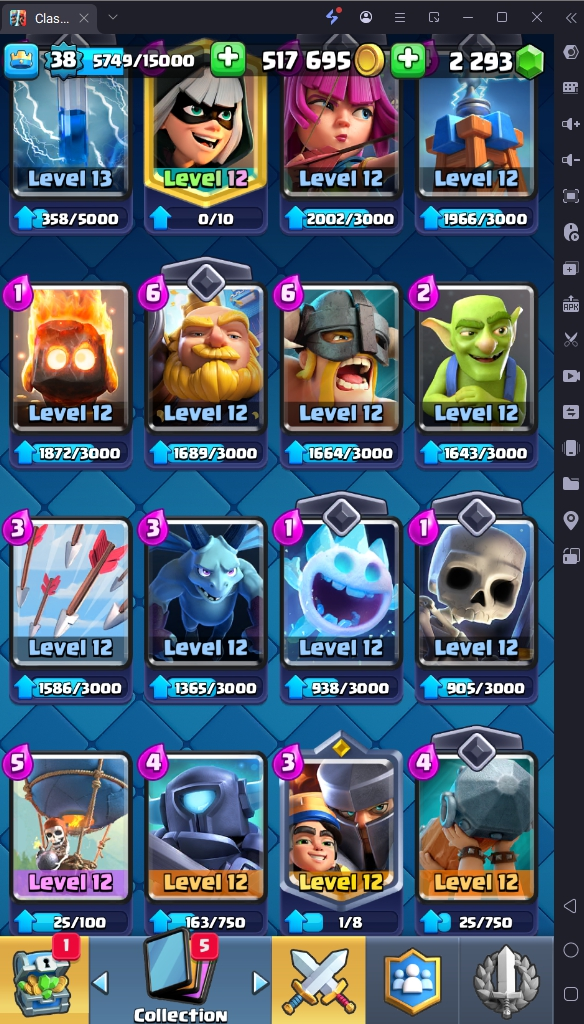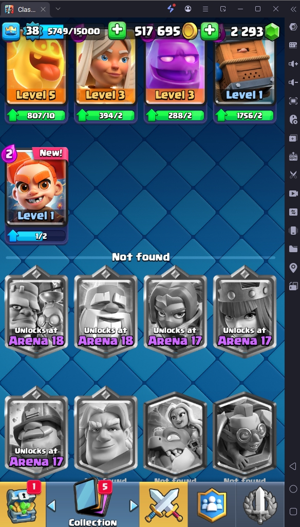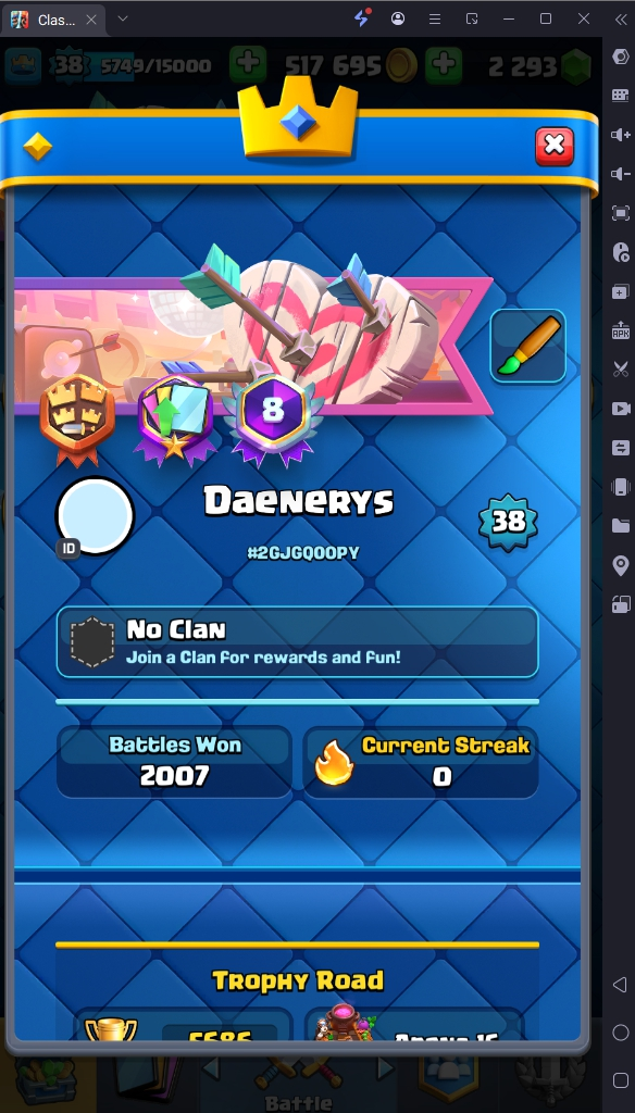 5686 TROPHY 🏆 38 LVL 💯 KT 13 👑 109 CARDS ♦️ 0 MAX CARDS 👑 0 ELITE CARDS 🔮 1 EVO 💯 EMOTE 14 🎭 #2GJGQ00PY ⸱ TAG ACCOUNT ♥️