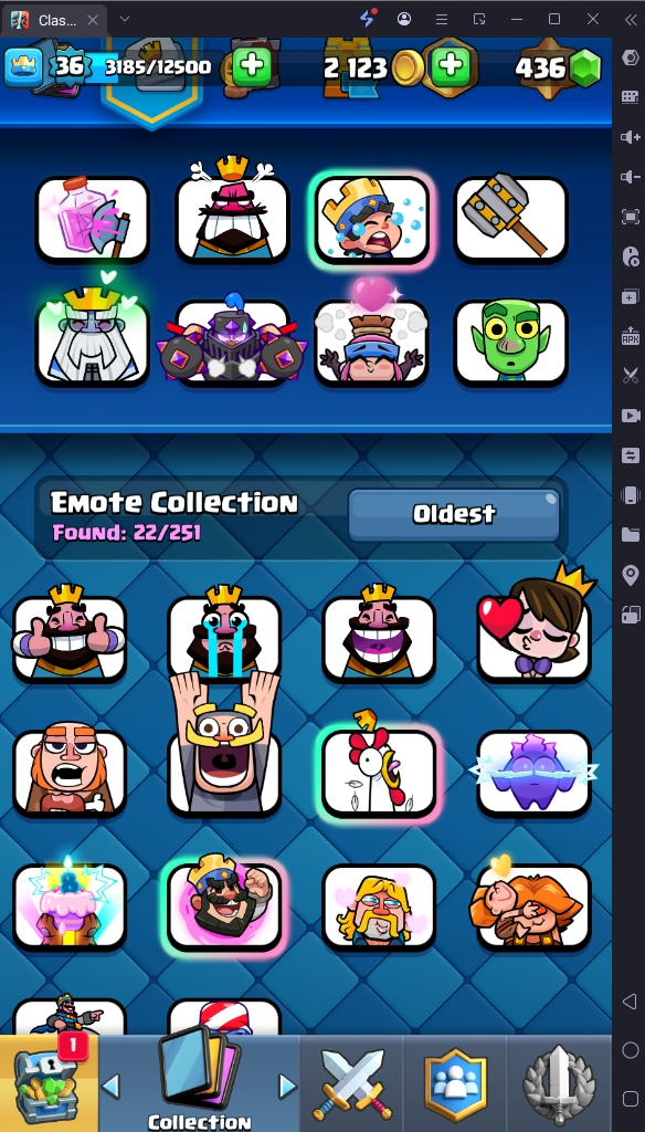 6135 TROPHY 🏆 36 LVL 💯 KT 12 👑 112 CARDS ♦️ 2 MAX CARDS 👑 0 ELITE CARDS 🔮 3 EVO 💯 EMOTE 22 🎭 #GPYPVRQVJ ⸱ TAG ACCOUNT ♥️