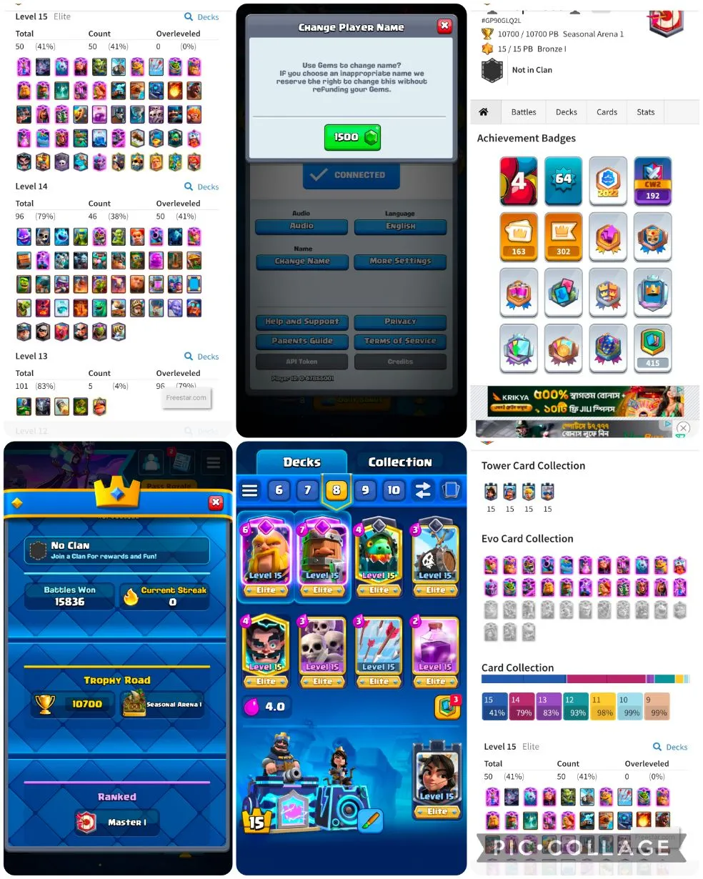【6190 Gems】➺【50 Elite➺96 Max Card】💥Kt-15➪22 Evo💥10700 Trophy💥163 Rare Emote💥Lvl 64💥26 Tower Skin💥Full Access💥Instant Deli(3701)