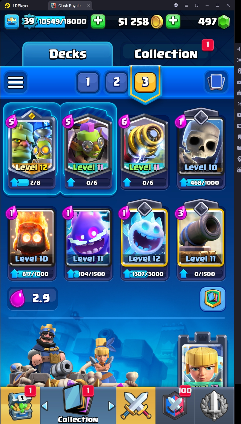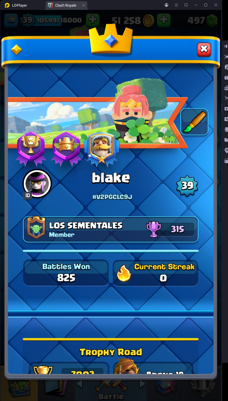 7002 TROPHY 🏆 39 LVL 💯 KT 13 👑 115 CARDS ♦️ 1 MAX CARDS 👑 0 ELITE CARDS 🔮 3 EVO 💯 EMOTE 39 🎭 #V2PGCLC9J ⸱ TAG ACCOUNT ♥️