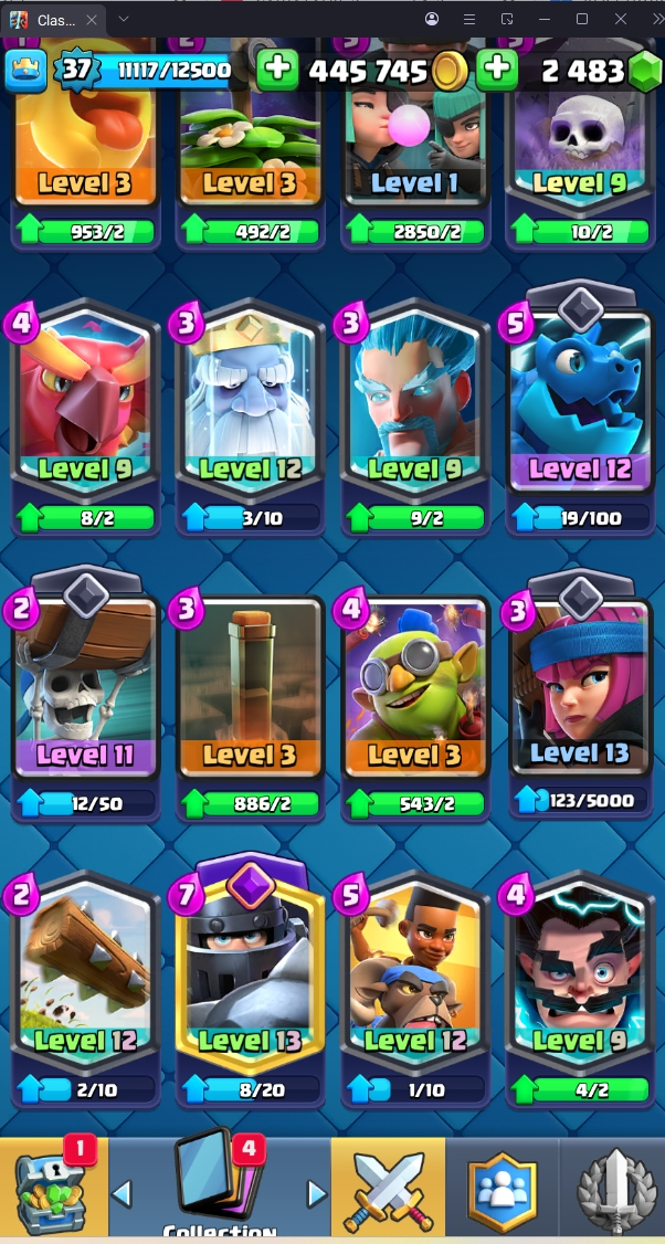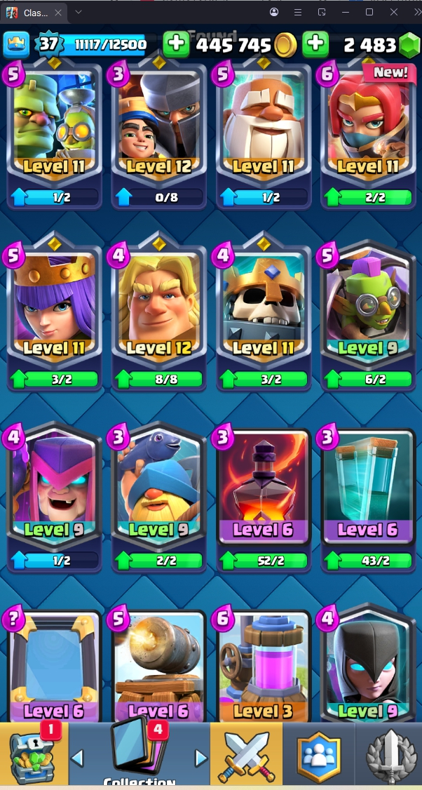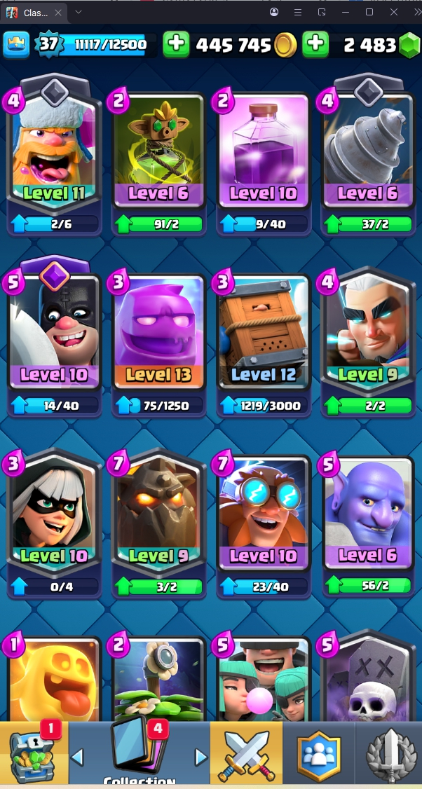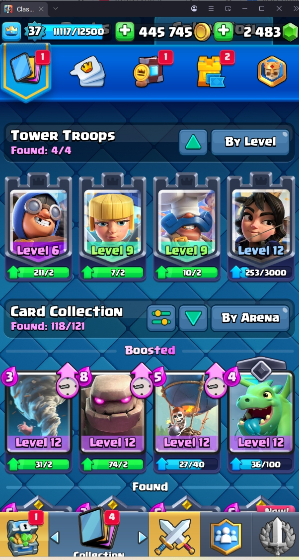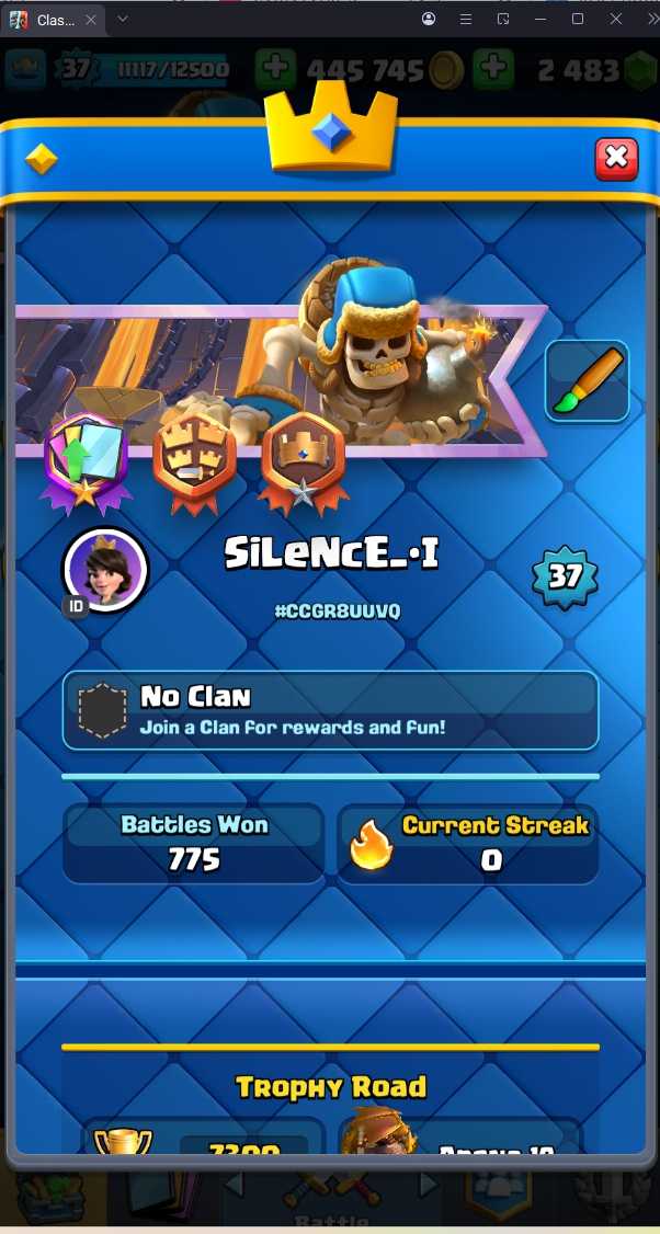 7300 TROPHY 🏆 37 LVL 💯 KT 12 👑 118 CARDS ♦️ 3 MAX CARDS 👑 0 ELITE CARDS 🔮 4 EVO 💯 EMOTE 27 🎭 #CCGR8UUVQ ⸱ TAG ACCOUNT ♥️