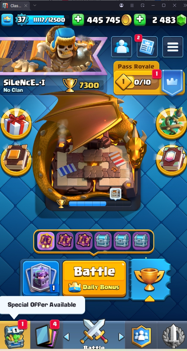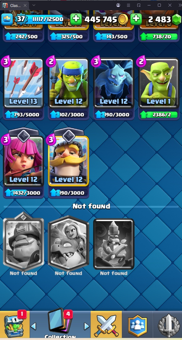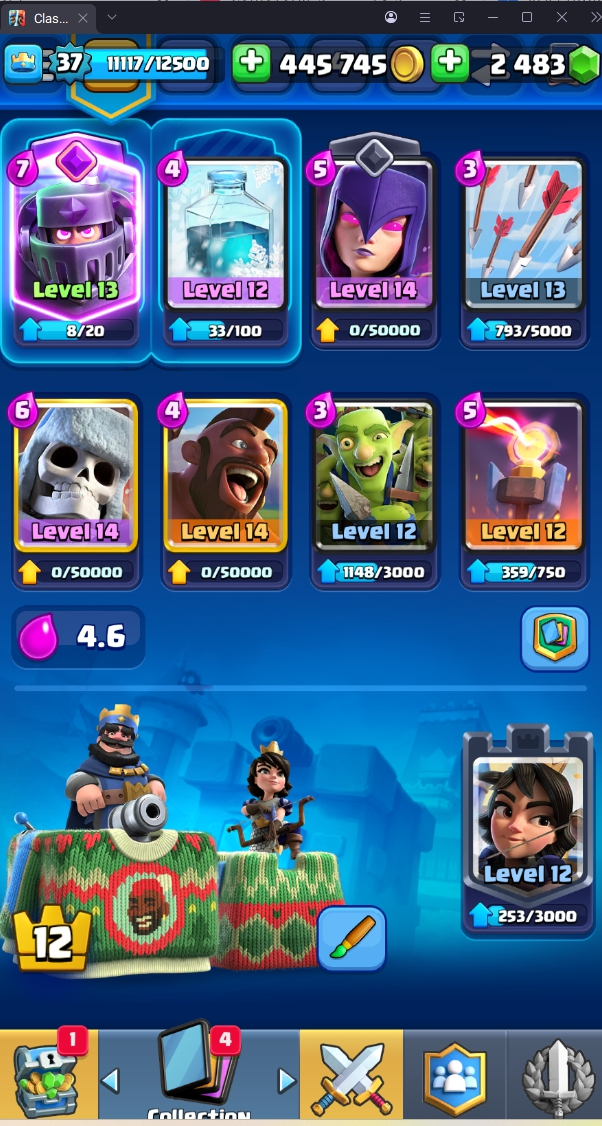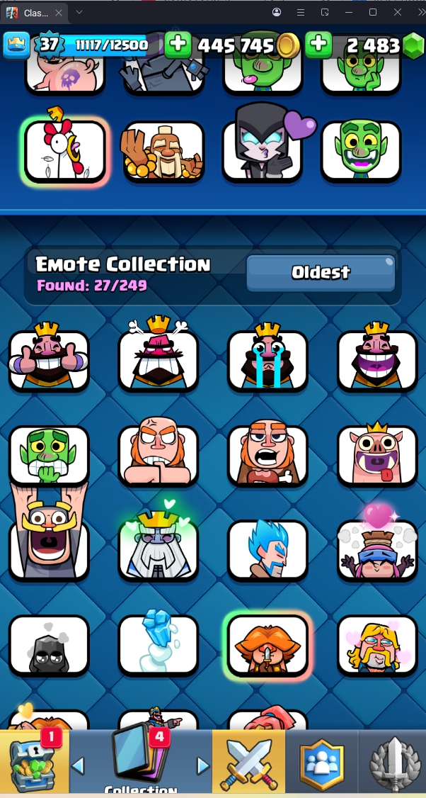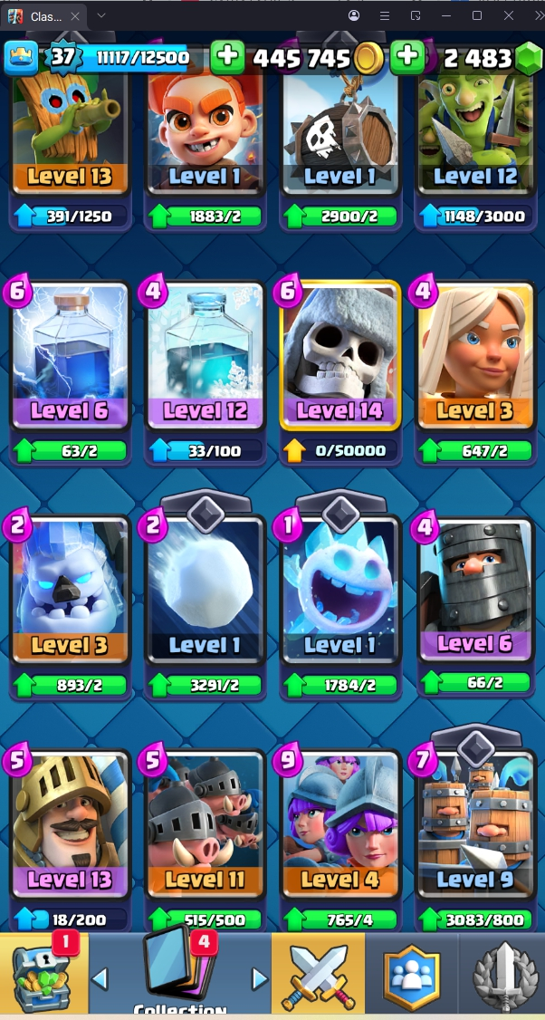 7300 TROPHY 🏆 37 LVL 💯 KT 12 👑 118 CARDS ♦️ 3 MAX CARDS 👑 0 ELITE CARDS 🔮 4 EVO 💯 EMOTE 27 🎭 #CCGR8UUVQ ⸱ TAG ACCOUNT ♥️