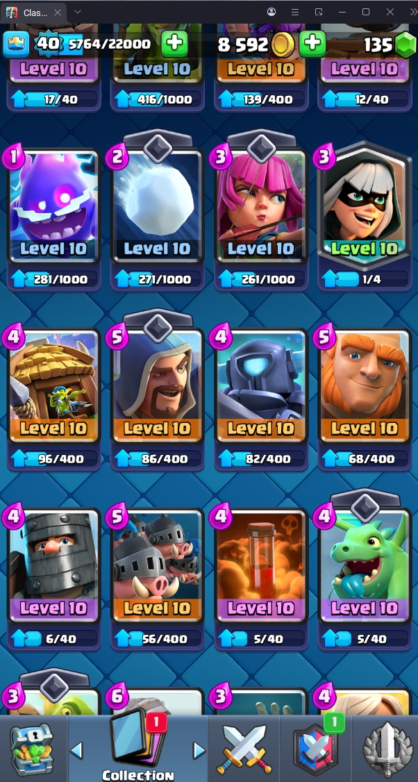 8120 TROPHY 🏆 40 LVL 💯 KT 13 👑 120 CARDS ♦️ 4 MAX CARDS 👑 0 ELITE CARDS 🔮 4 EVO 💯 EMOTE 30 🎭 #UJVQVP9CV ⸱ TAG ACCOUNT ♥️
