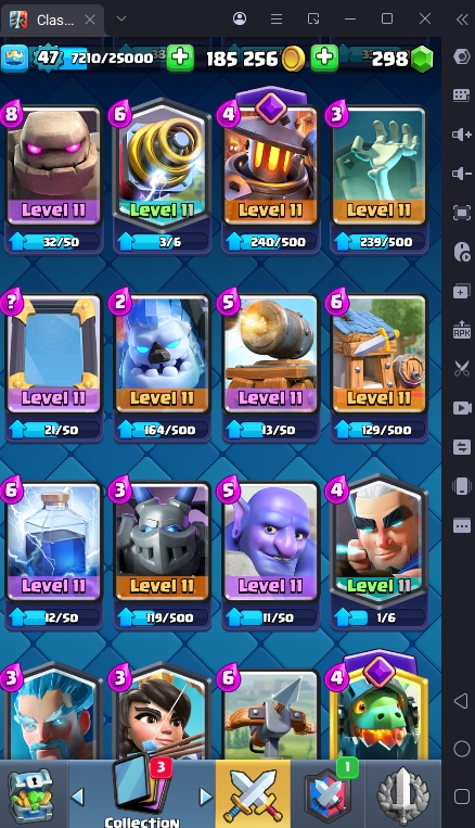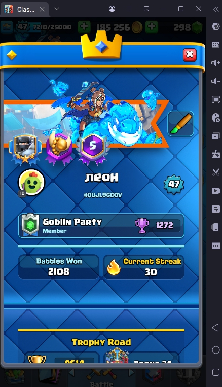9614 TROPHY 🏆 47 LVL 💯 KT 14 👑 121 CARDS ♦️ 9 MAX CARDS 👑 1 ELITE CARDS 🔮 11 EVO 💯 EMOTE 62 🎭 #QUJL9GC0V ⸱ TAG ACCOUNT ♥️