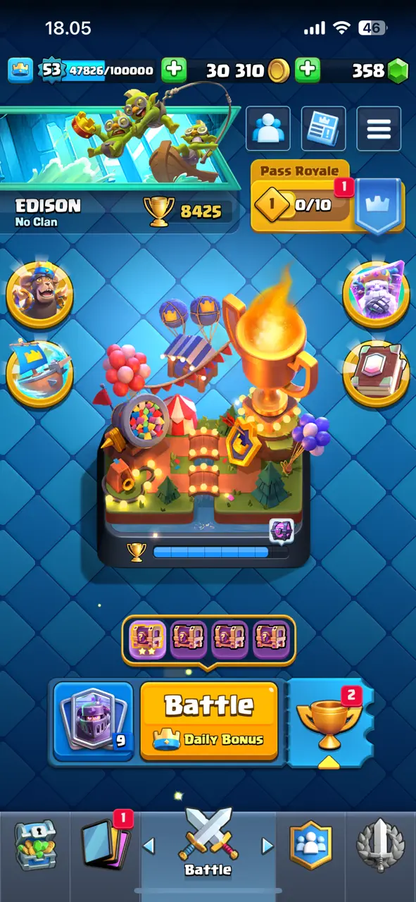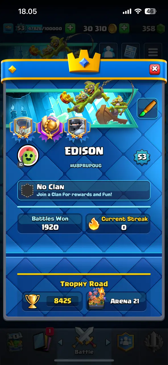 π₯ CHEAPEST π₯ CR Lv.53 π₯ Free Change Name π₯ Arena 21 π₯ 8425 Trophies π₯ KT 14 π₯ 7 Evo Cards π₯ 14 Max Cards & 7 Elites π₯ 100 Emotes π₯ 7 Tower Skins π₯ [F2647] π₯