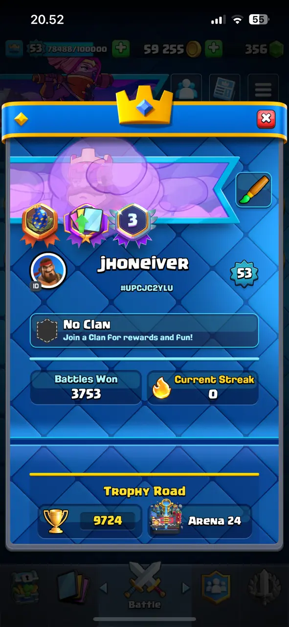 π₯ CHEAPEST π₯ CR Lv.53 π₯ Free Change Name π₯ Arena 24 π₯ 9724 Trophies π₯ KT 14 π₯ 10 Evo Cards π₯ 29 Max Cards & 4 Elites π₯ 102 Emotes π₯ 10 Tower Skins π₯ [F2650] π₯