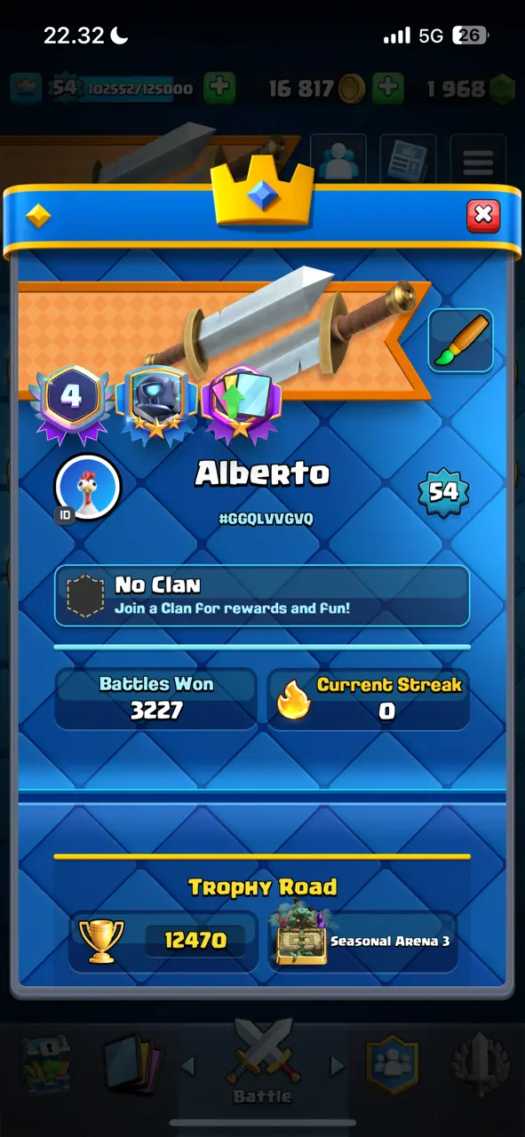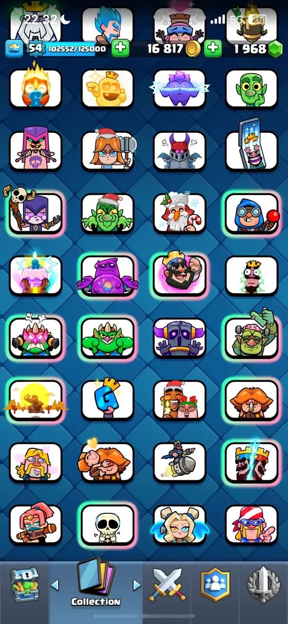 π₯ CHEAPEST π₯ CR Lv.54 π₯ Free Change Name π₯ Seasonal Arena 2 π₯ 12470 Trophies π₯ KT 15 π₯ 16 Evo Cards π₯ 27 Max Cards & 5 Elites π₯ 63 Emotes π₯ 11 Tower Skins π₯ [F2772] π₯