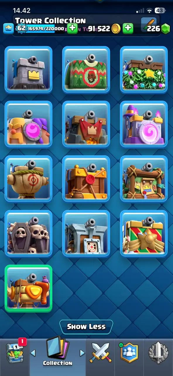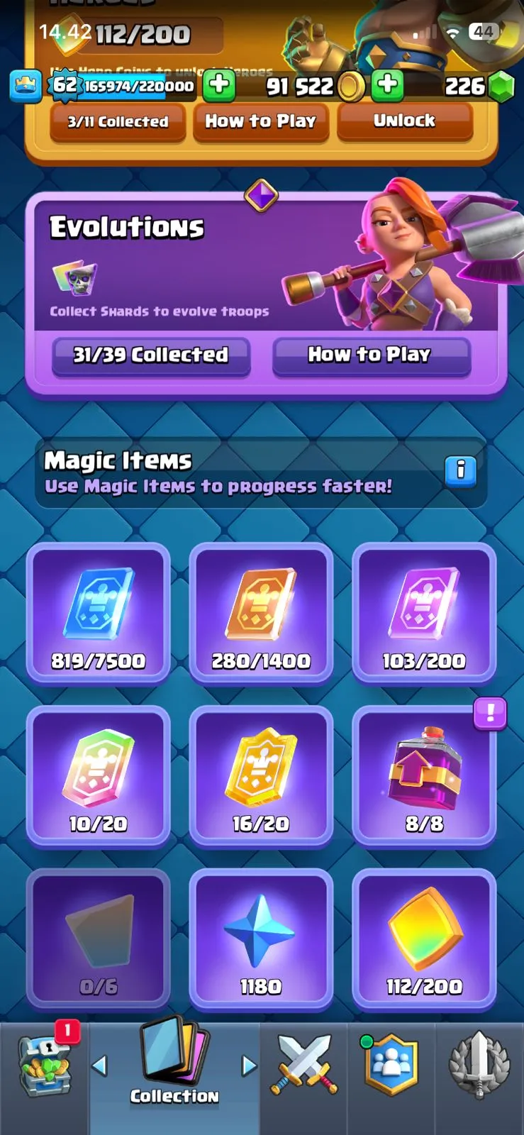 cheapest🔥cr lv 62🔥evo 31🔥arena 28🔥trophy 11500🔥skins tower 13🔥full access account🔥