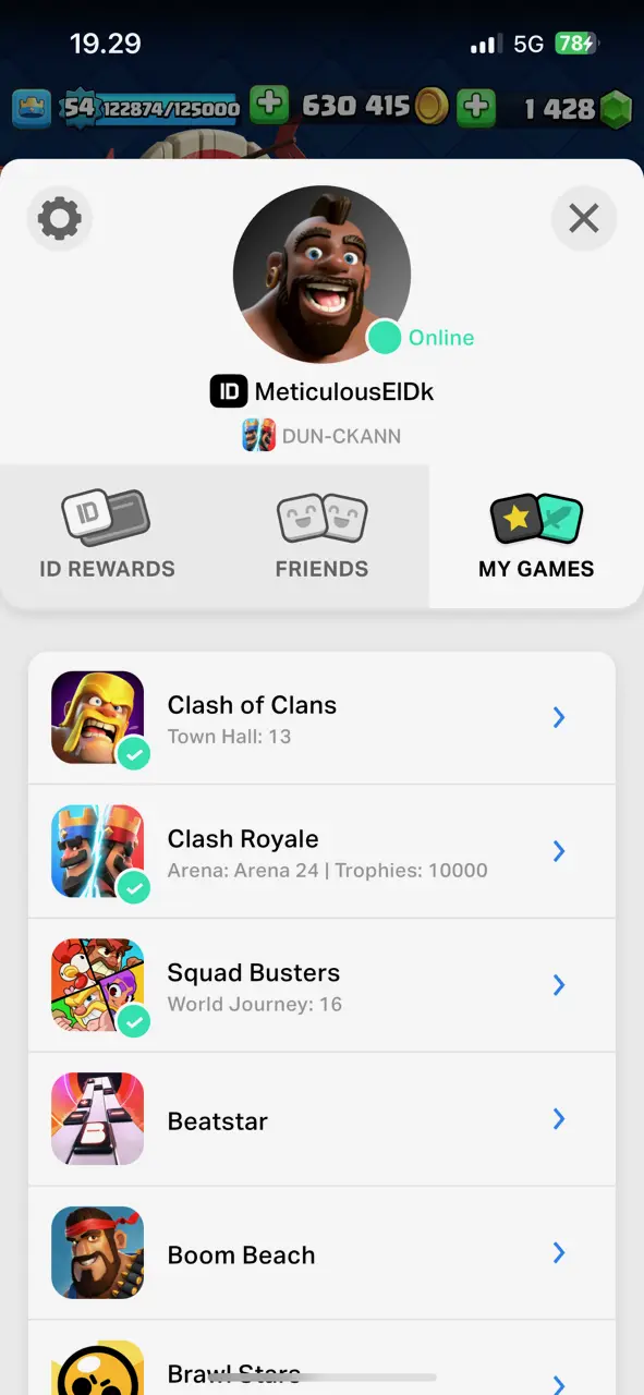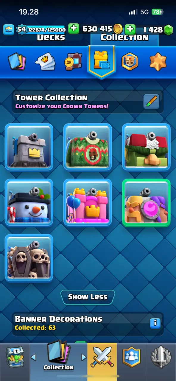 π₯ Combo CR+COC TH 13 π₯ CR Lv.54 π₯ Free Change Name π₯ Seasonal Arena 1 π₯ 10300 Trophies π₯ KT 15 π₯ 6 Evo Cards π₯ 22 Max Cards & 10 Elites π₯ 107 Emotes π₯ 7 Tower Skins π₯ [F2685] π₯