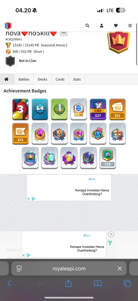 🔥 -CRL 2022 Bagdes- 🔥 CR Lv.64 🔥Seasonal Arena 5🔥15.145 Trophy🔥KT 15🔥45 Elite & 107 Max Card🔥19 Evo Card🔥151 Emotes🔥22 Tower Skins🔥Full Acces & Guaranteed🔥
