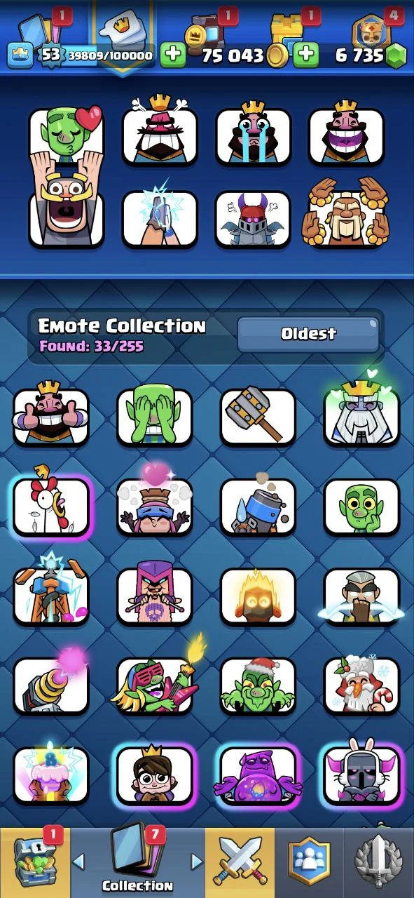 😍 FREE FREE FREE✨ KT 14 🔱 LVL 53 🏆 CUPS[8013] ✨ MAX CARDS [12] ✨ ELITE [6] ✨ EVO [4] ✨ LVL 14 [6] ✨ EMOTES [33] ✨ CARDS [120] ✨ FREE COC ACC ✨ FREE SQUAD BUSTERS MAX ✨ 10000% SAFE