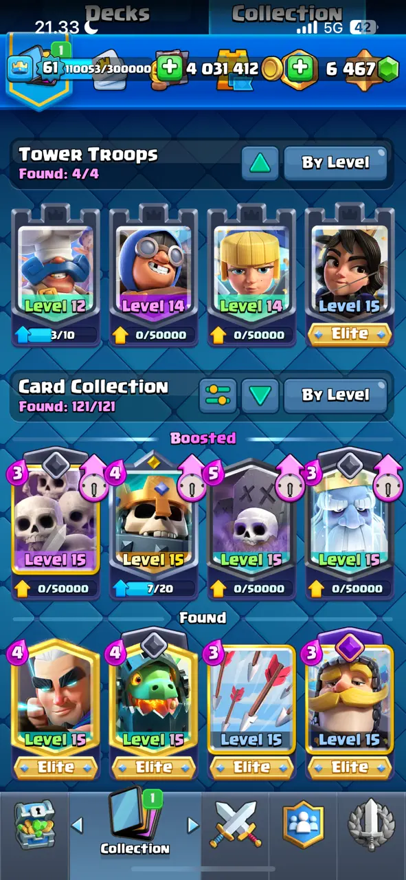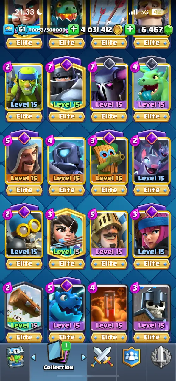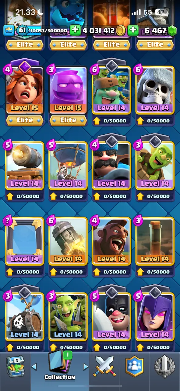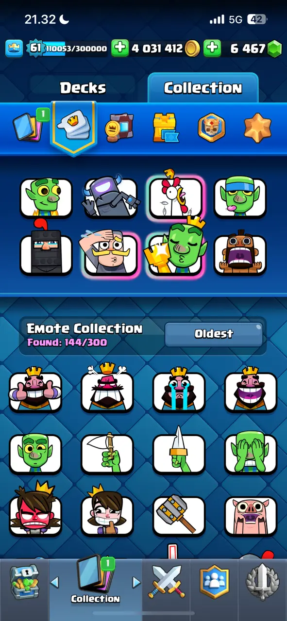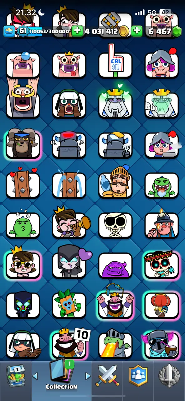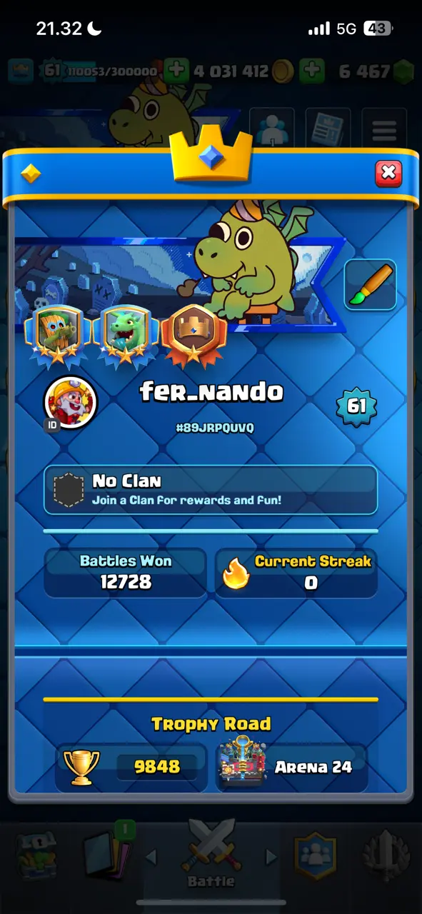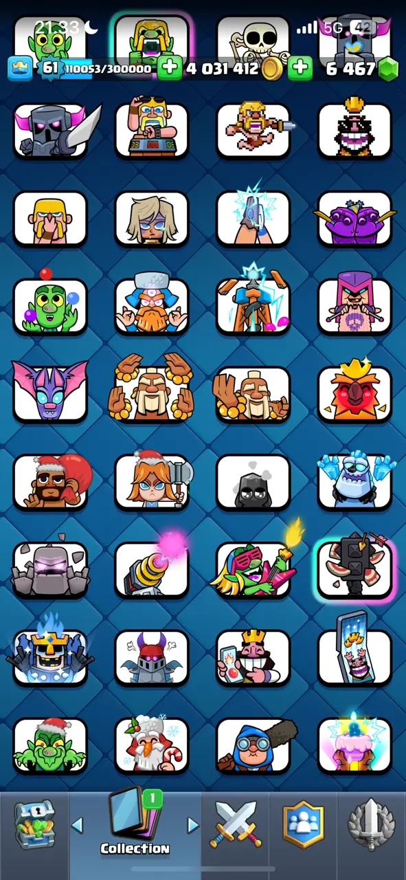 π₯ Goblin Kissing Emote π₯ CR Lv.61 π₯ 8 Years Played π₯ Free Change Name π₯ Arena 24 π₯ 9848 Trophies π₯ KT 15 π₯ 17 Evo Cards π₯ 110 Max Cards & 22 Elites π₯ 144 Emotes π₯ 18 Tower Skins π₯ [F2769] π₯