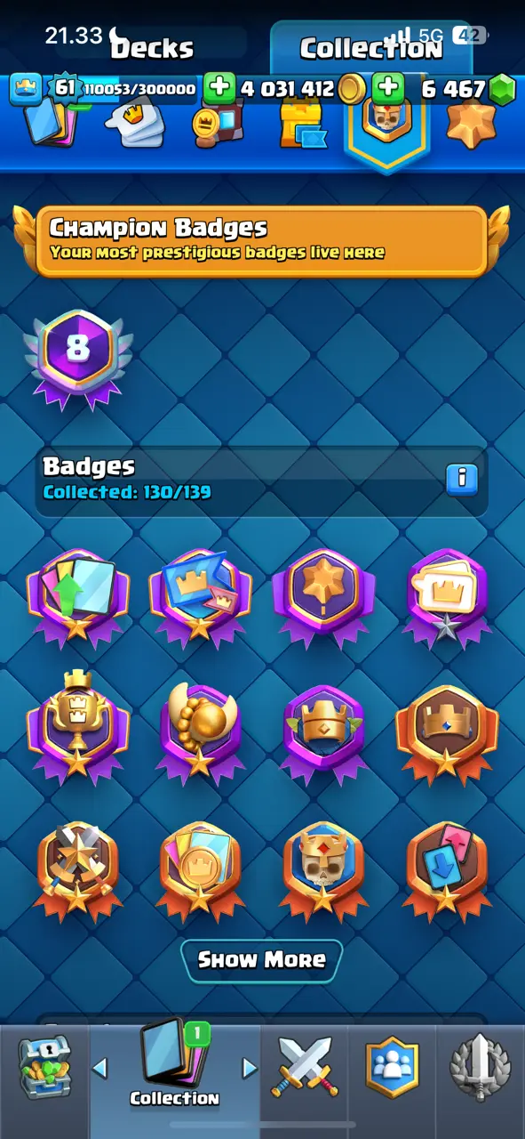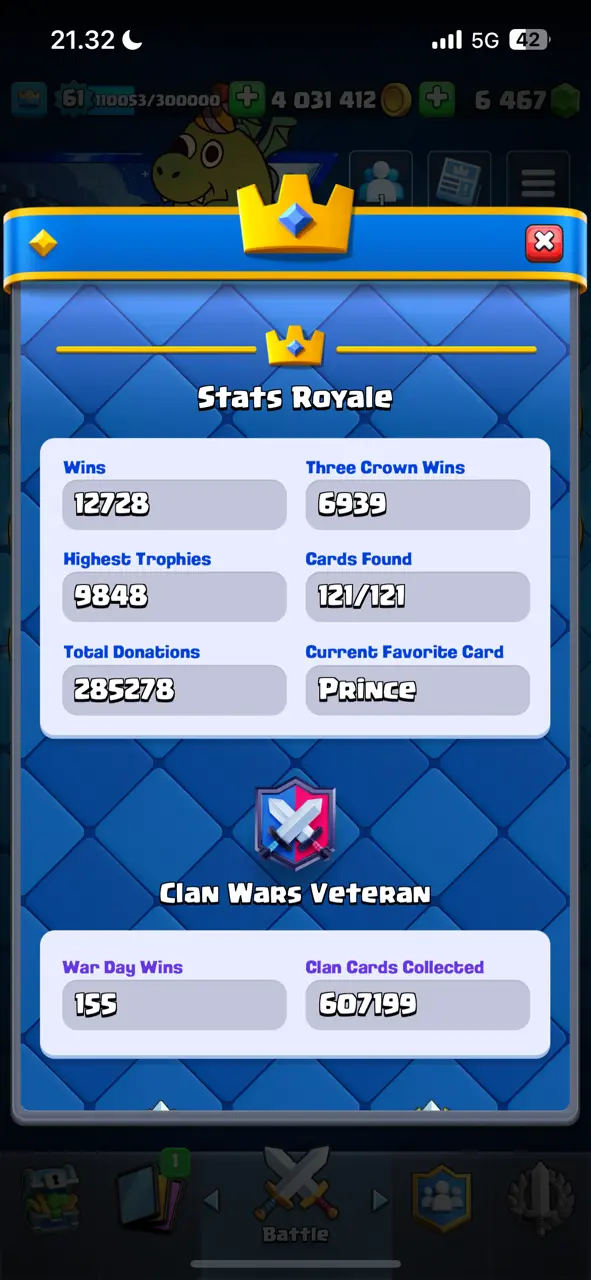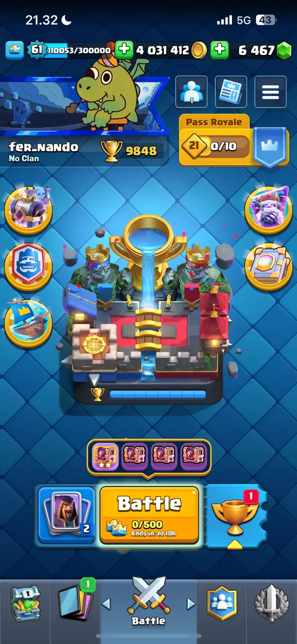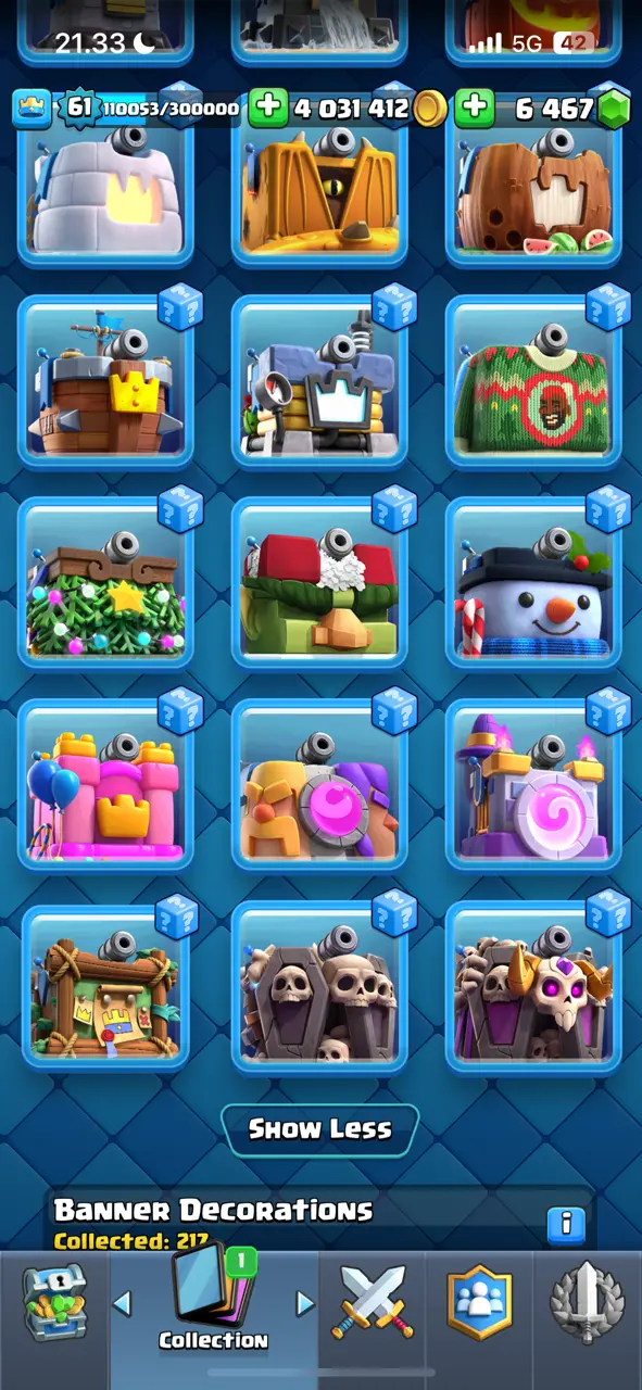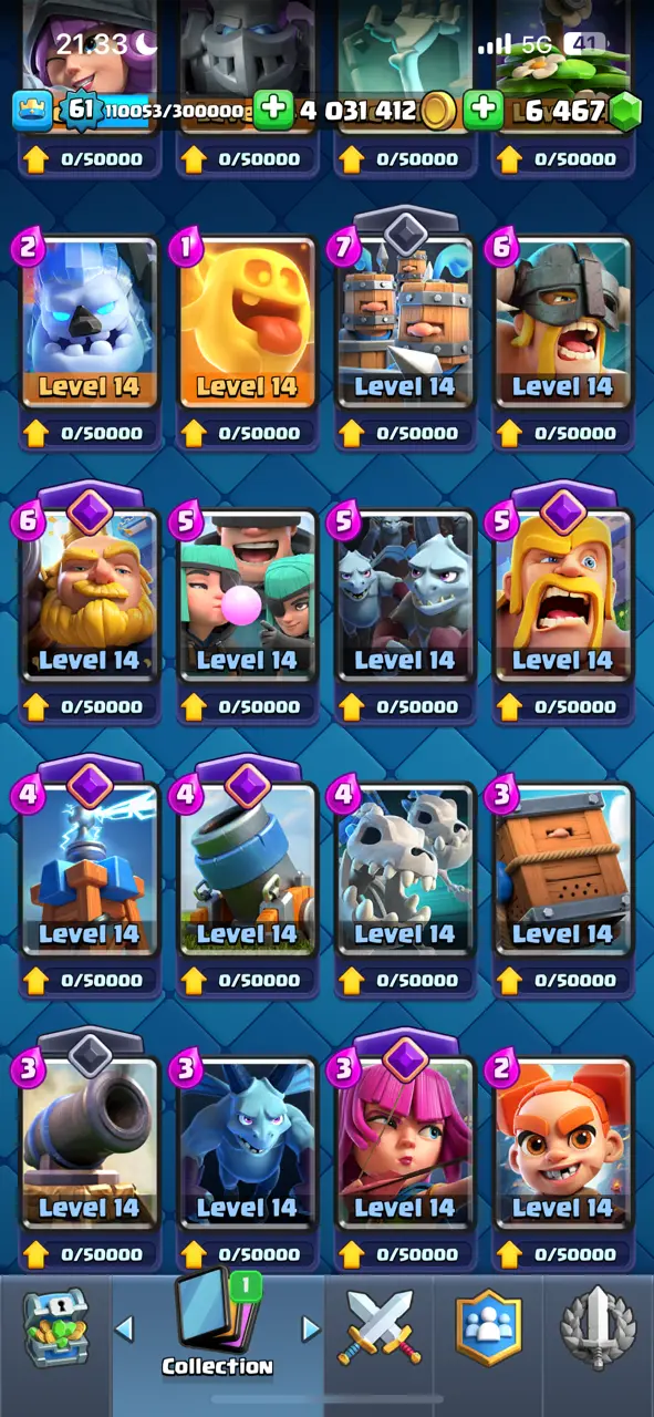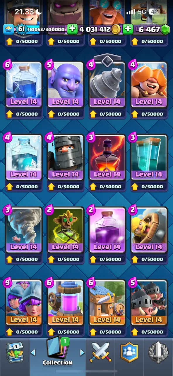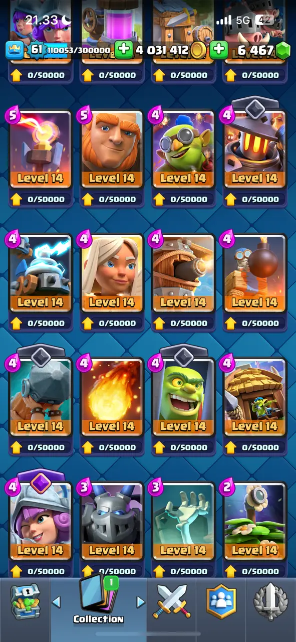 π₯ Goblin Kissing Emote π₯ CR Lv.61 π₯ 8 Years Played π₯ Free Change Name π₯ Arena 24 π₯ 9848 Trophies π₯ KT 15 π₯ 17 Evo Cards π₯ 110 Max Cards & 22 Elites π₯ 144 Emotes π₯ 18 Tower Skins π₯ [F2769] π₯