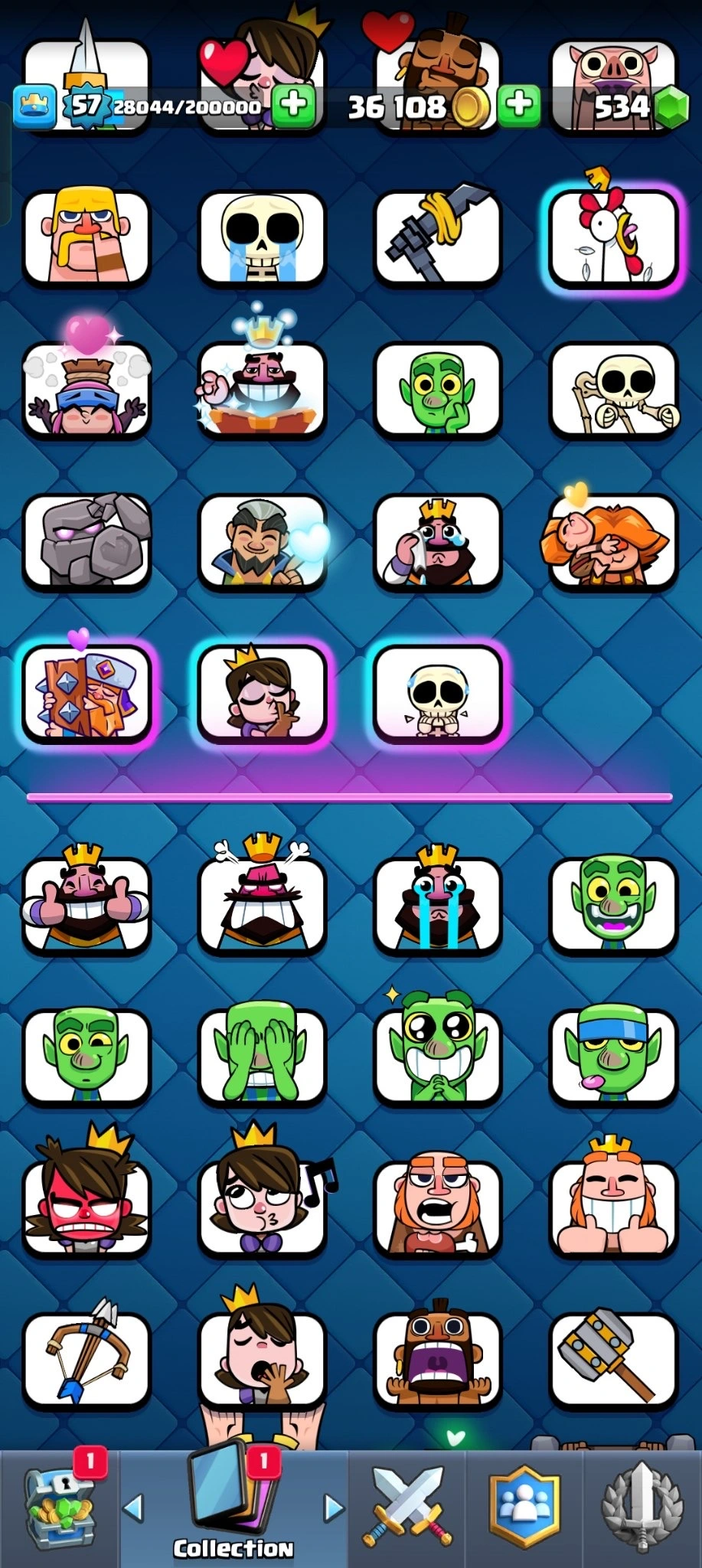 π₯ [PREMIUM] π₯ 9349 TROPHYS π₯ 14 EVO CARDS π₯10 ELITE CARDS π₯58 MAX CARDS π₯ 110 EMOTES π₯XP (57)π₯KT (15) π₯ 36108 GOLD π₯ 534 GEMS π₯Β INSTANT DELIVERY π