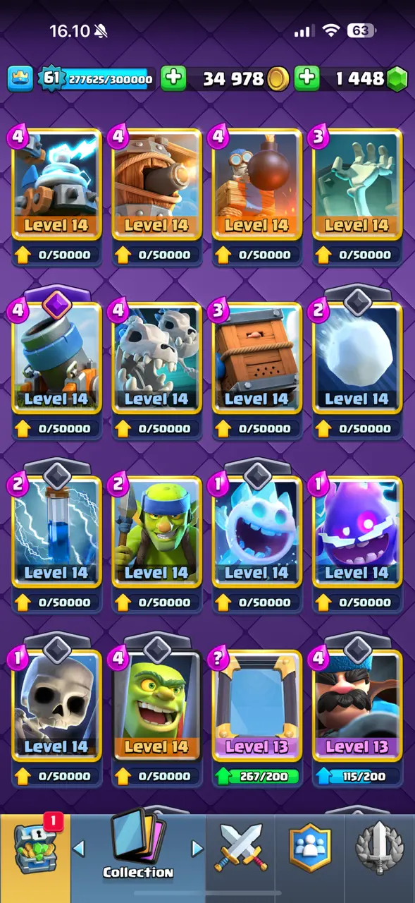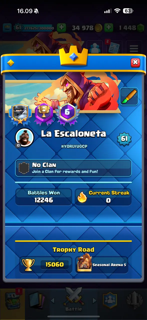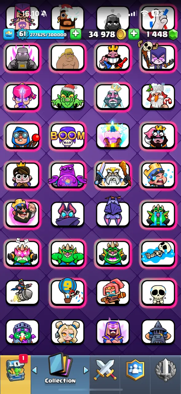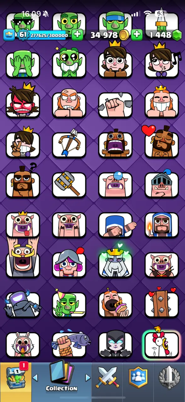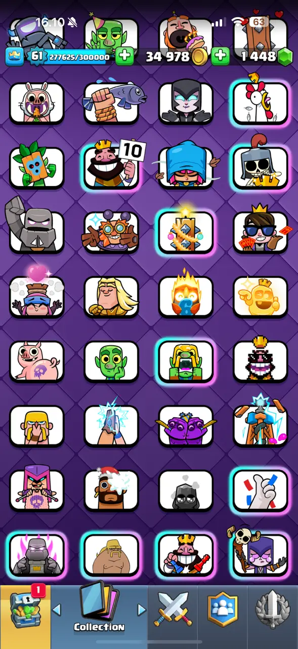 🔥 [RAREST] 🔥 CR Lv.61 🔥Seasonal Arena 5🔥15.060 Trophy🔥KT 15🔥33 Elite & 59 Max Card🔥10 Evo Card🔥114 Emotes🔥10 Tower Skins🔥Available Rename🔥Full Acces & Guaranteed🔥