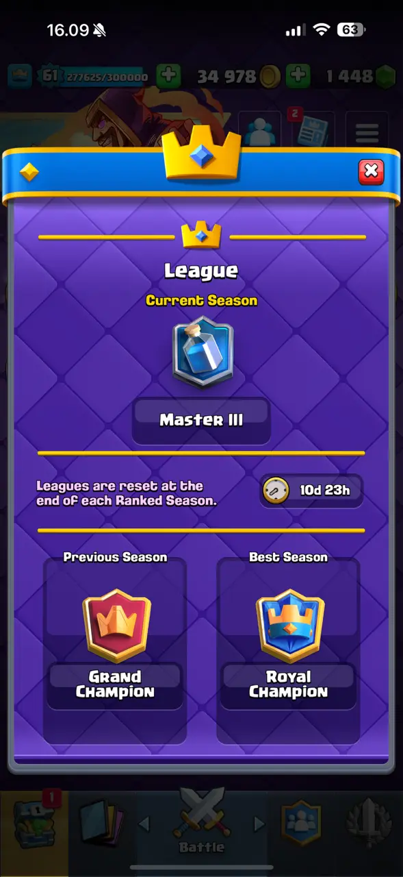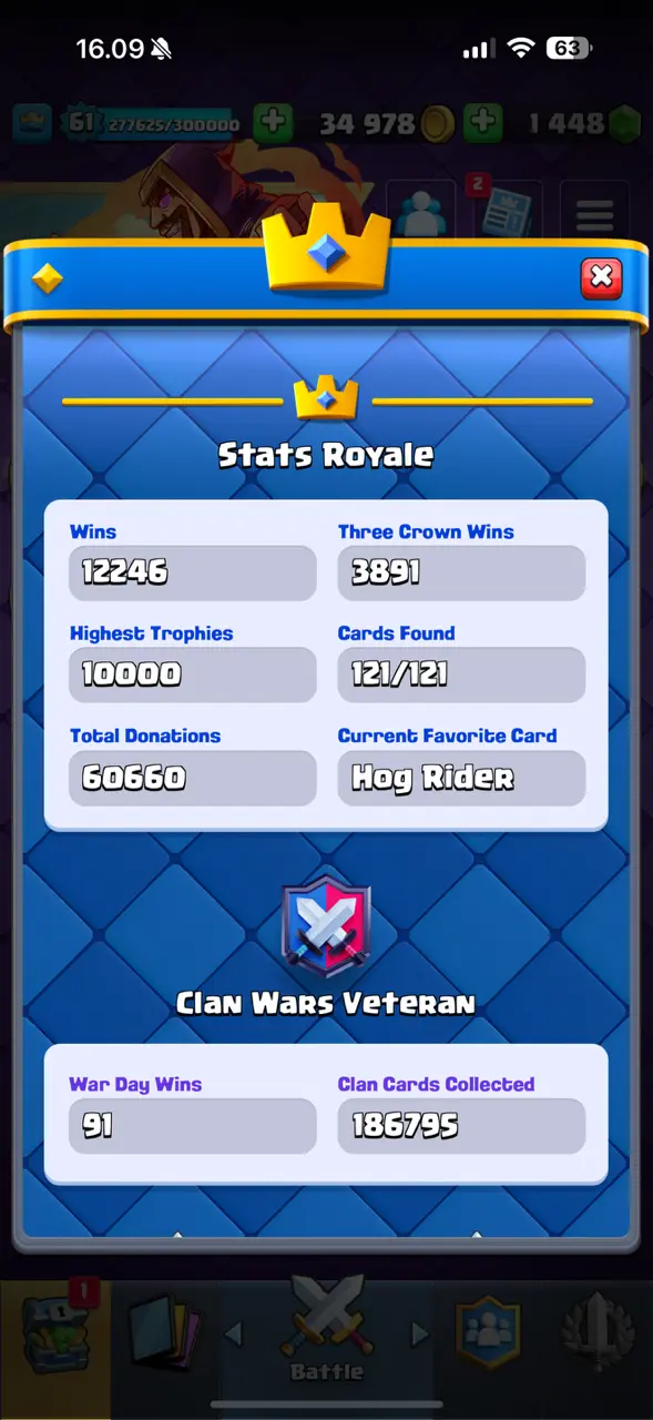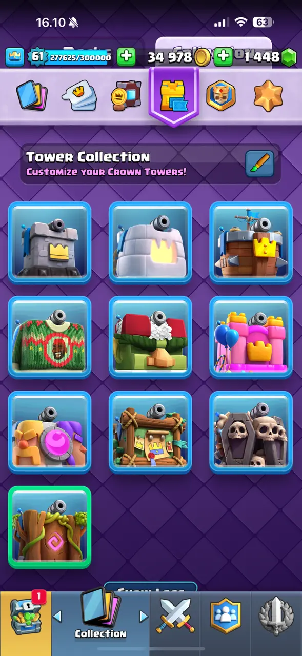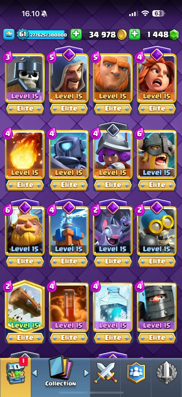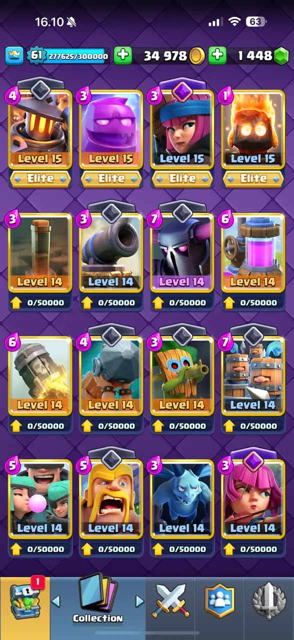 🔥 [RAREST] 🔥 CR Lv.61 🔥Seasonal Arena 5🔥15.060 Trophy🔥KT 15🔥33 Elite & 59 Max Card🔥10 Evo Card🔥114 Emotes🔥10 Tower Skins🔥Available Rename🔥Full Acces & Guaranteed🔥