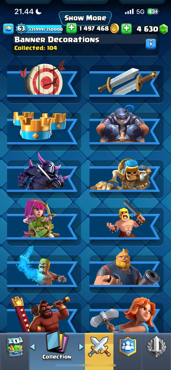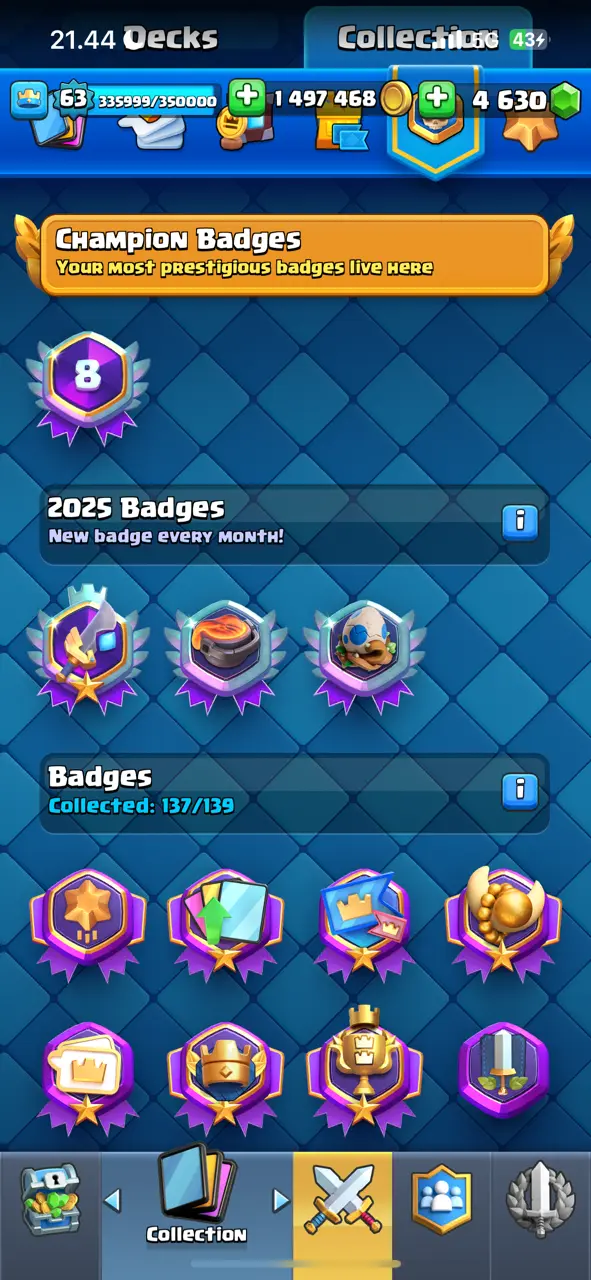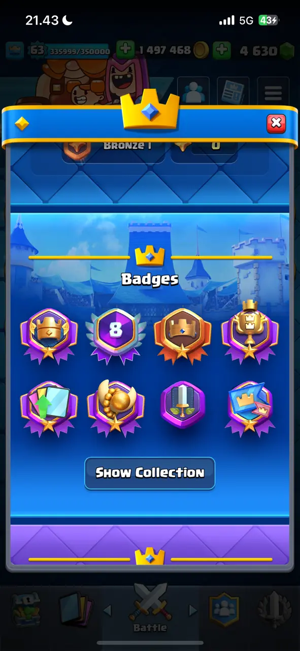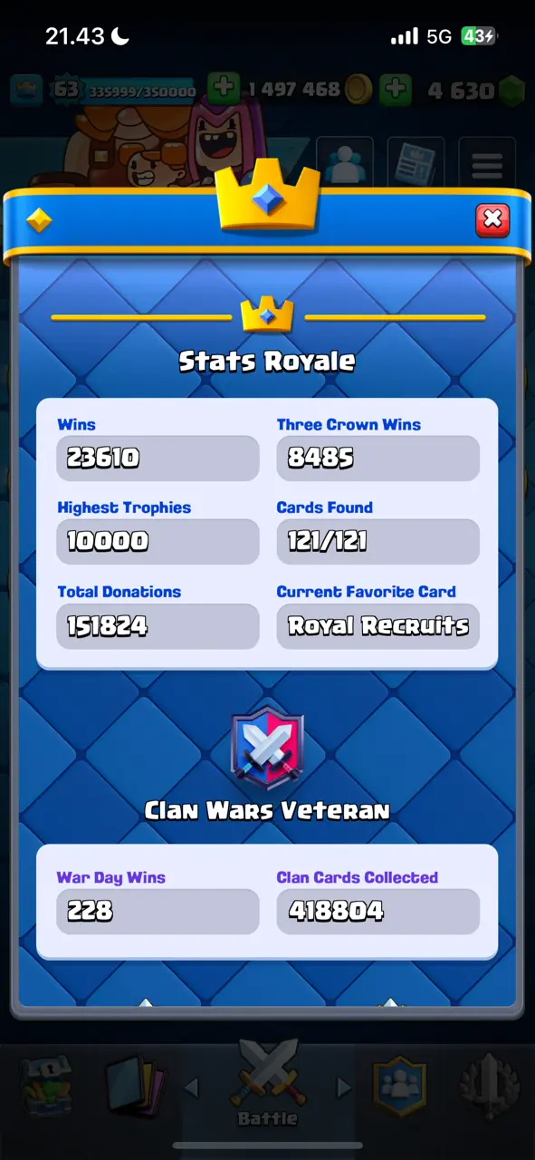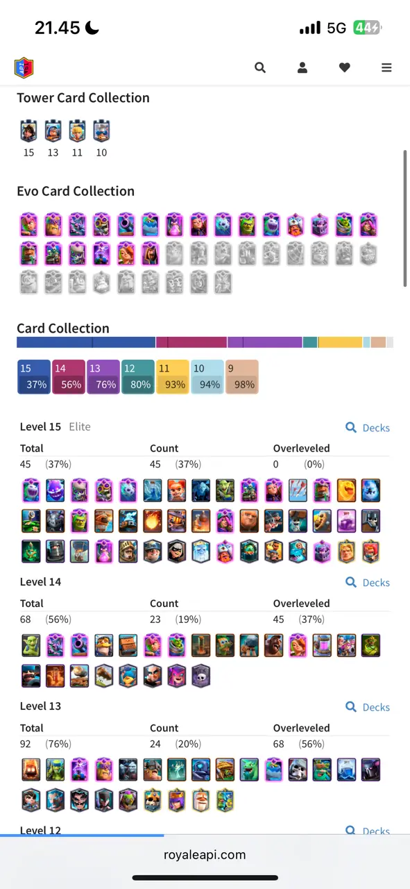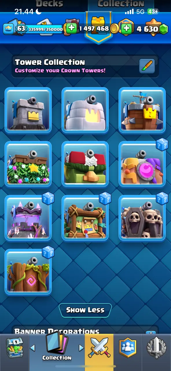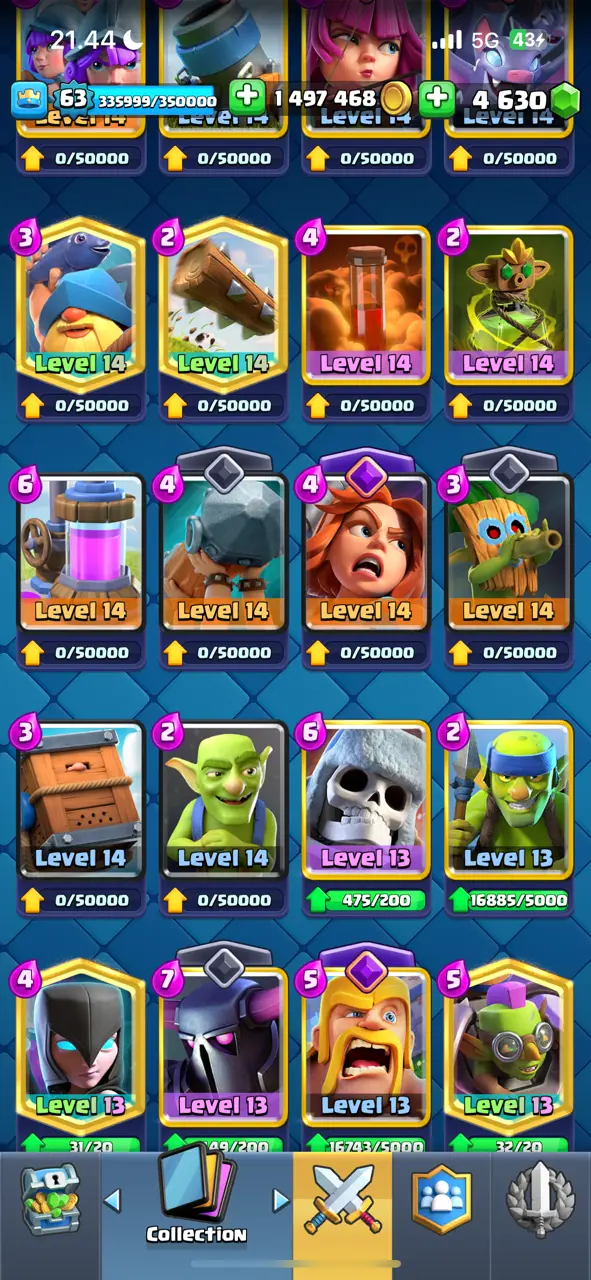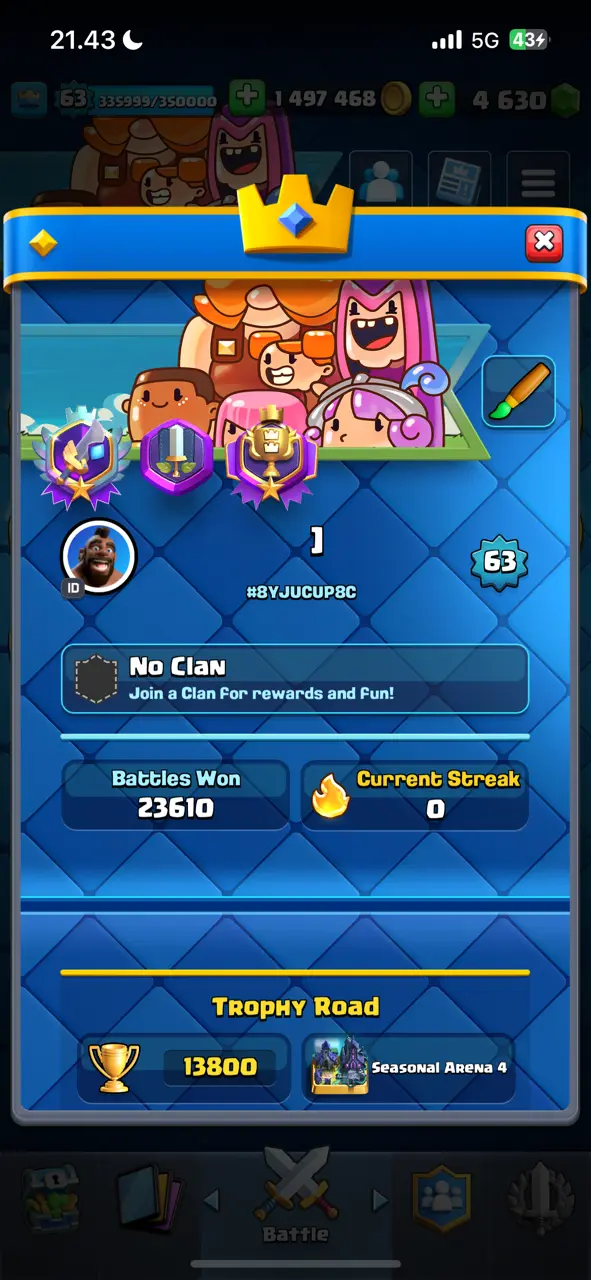 π₯ RAREST π₯ CR Lv.63 π₯ 8 Years Played π₯ Change Name ON π₯ Seasonal Arena 4 π₯ 13800 Trophies π₯ KT 15 π₯ 21 Evo Cards π₯ 68 Max Cards & 45 Elites π₯ 180 Emotes π₯ 10 Tower Skins π₯ [F2770] π₯