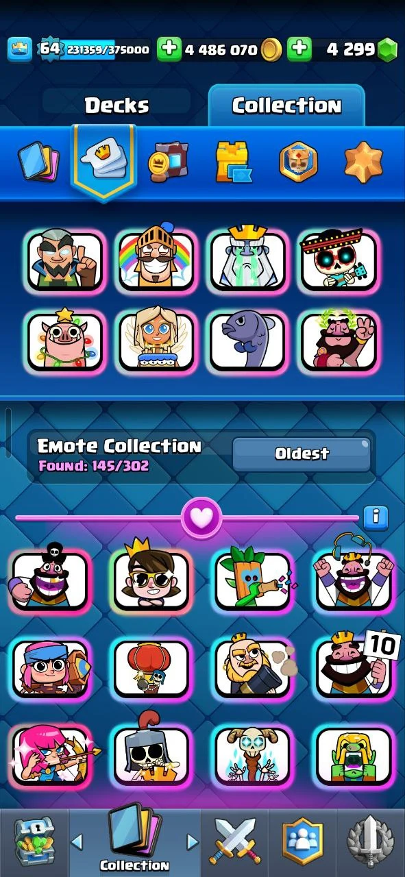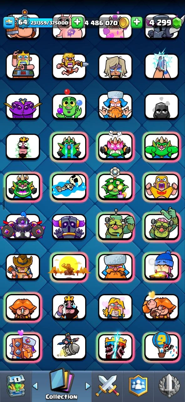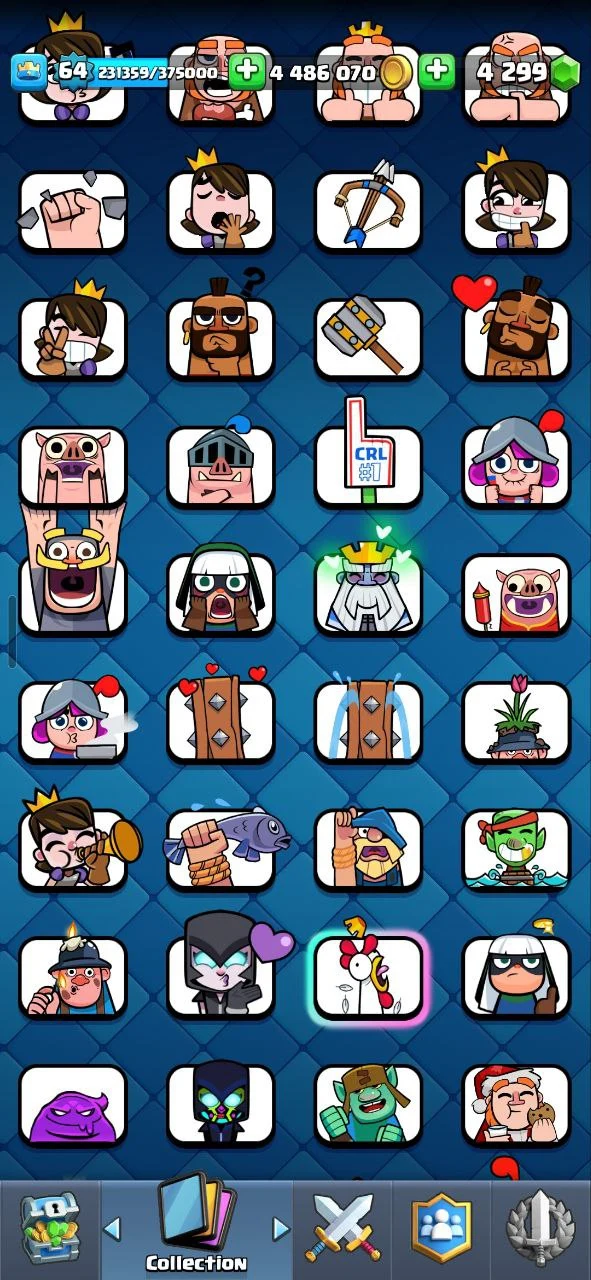 ✨️ (RAREST EMOTES) ❄️ FULLY MAXED 💎 S1 FIGHTING FISH 🐟 CRYING GHOST 👻 RAINBOW PRINCE 🌈 ANNIVERSARY HEALER 🎂 CHRISTMAS HOG 🎄 MAGIC ARCHER 🏹 64 XP 🎯 ULTIMATE CHAMPION 💪 11000 TROPHIES 🏆 44 ELITE CARDS 🐉 14 EVOLUTIONS 😈 20 TOWER SKINS 🔥