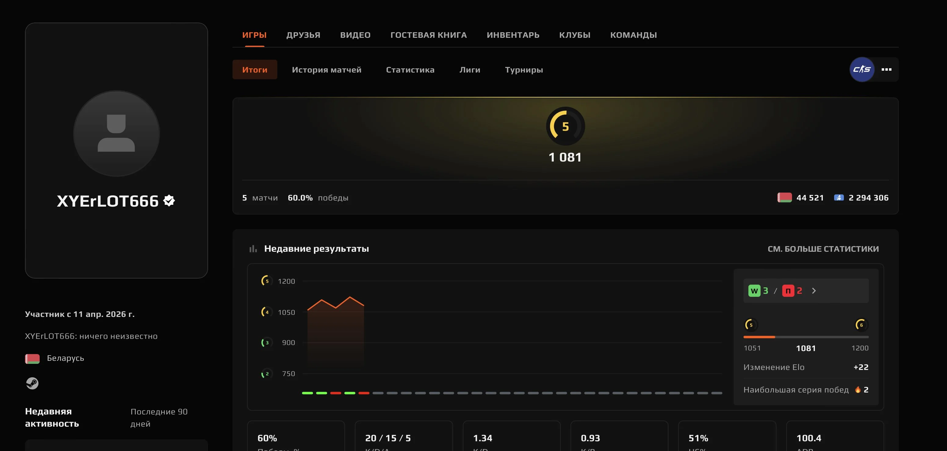 CS395 Prime enabled, FACEIT Level 5 Last season, 1081 Elo, Verified, Native email