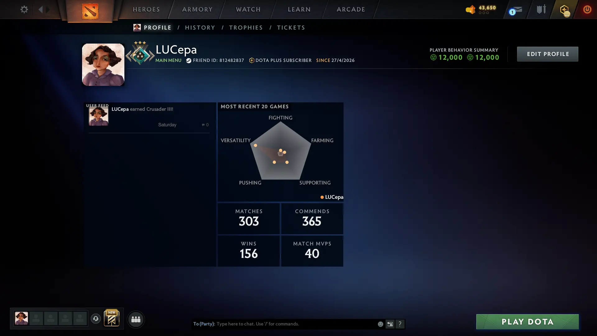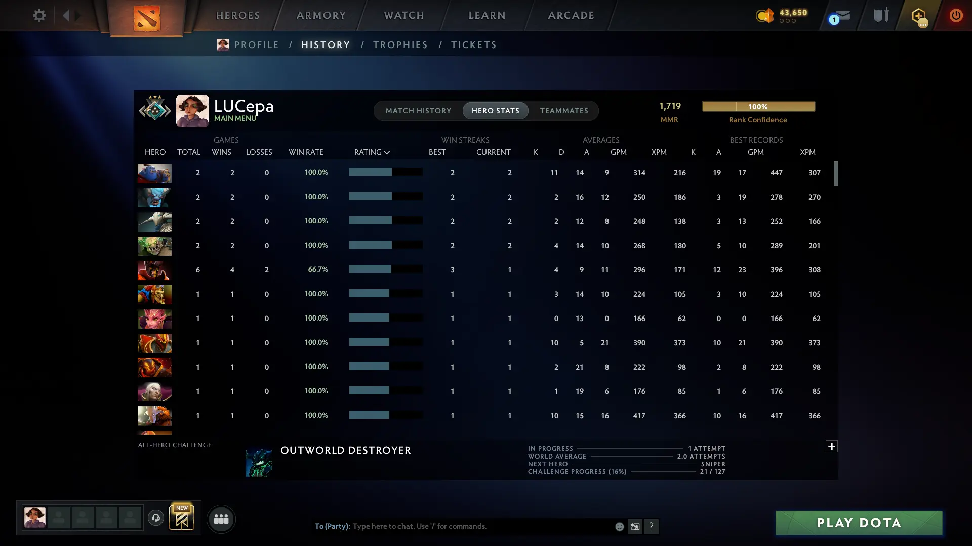 1719 MMR ⸱ Crusader ⸱ Fast search(Main pool) ⸱ 12000 behavior ⸱ 367 matches ⸱ Original email