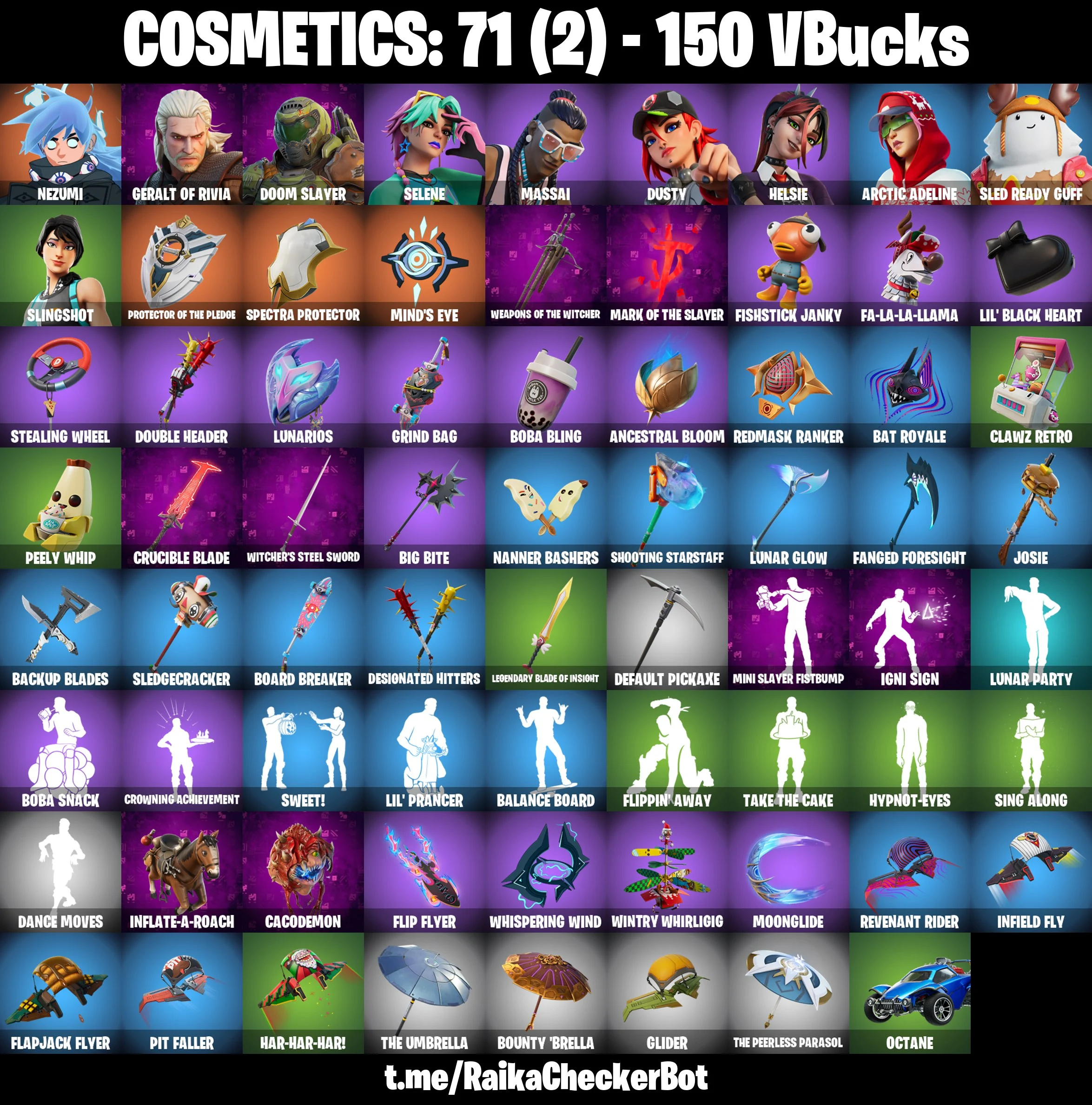 10 SKINS | Nezumi | Geralt of Rivia | Doom Slayer | Dusty | Helsie | Massai | Slingshot | [PC/PSN/XBOX] | 150 VB