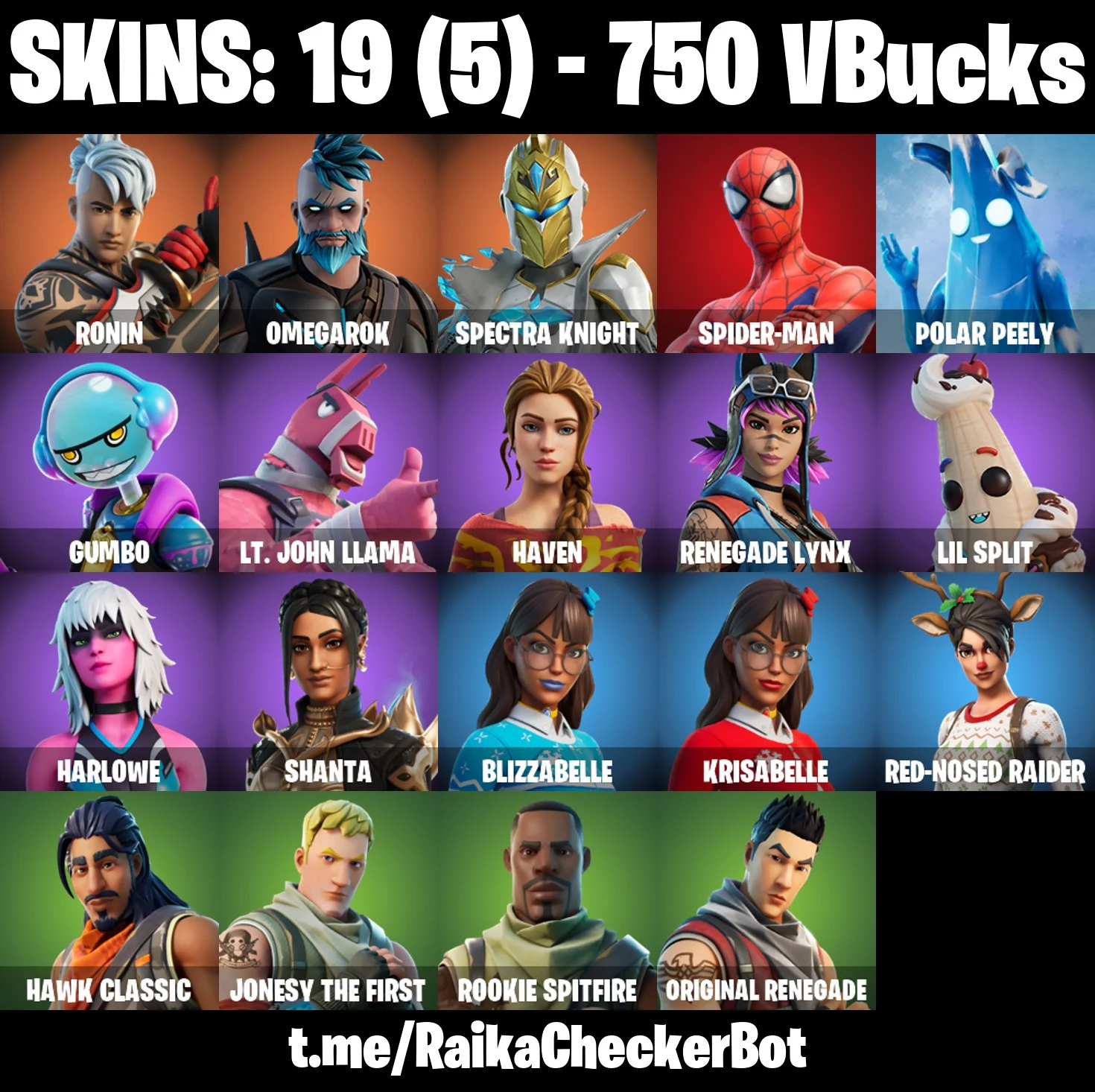 19 SKINS | Omegarok | Spectra Knight | Ronin | Spider-Man | Polar Peely | Haven | Renegade Lynx | Shanta | [PC/PSN/XBOX]
