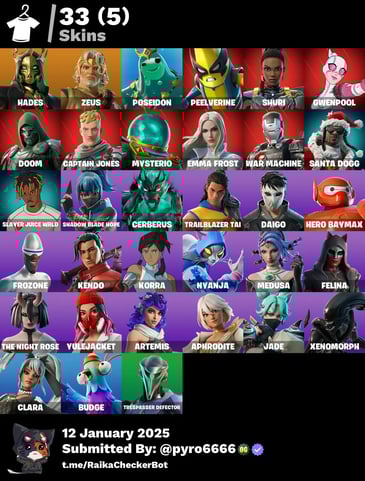 🟠 221 Skins ⚡️PC/PSN/XBOX⚡️🌊 CHUN LI 🌊 BRUNO MARS 🌊 LARS ULRICH 🌊 J BALVIN 🌊 FOOTBALLER SKIN 🌊 CRYPTIC 🌊 TOON MEOWSCLES 🌊 JUICE WORLD 🌊 FULL ACCES