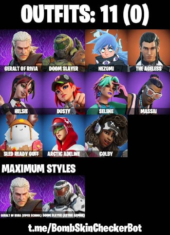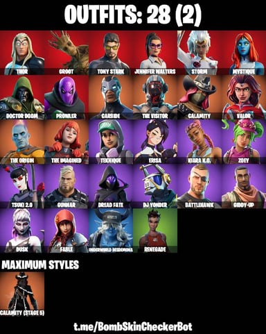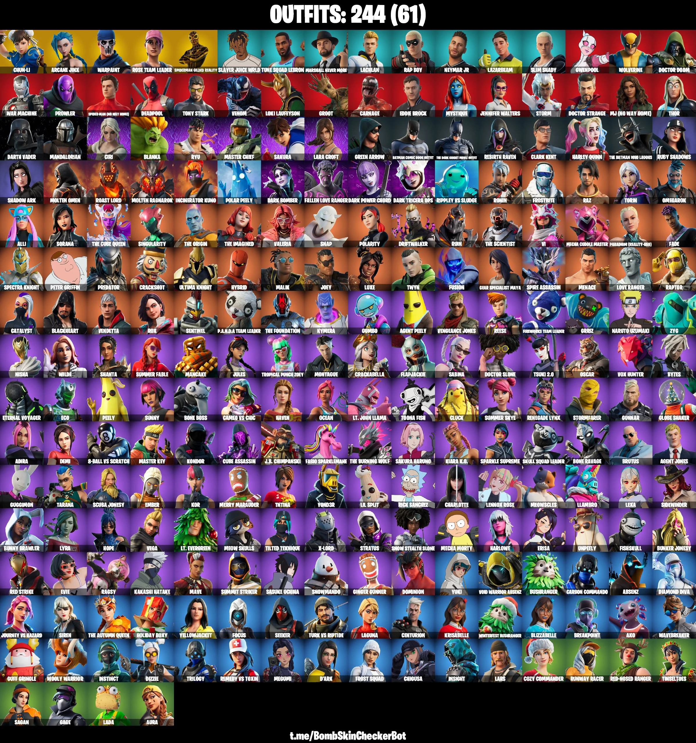 244 Skins| Chun Li, Arcane Jinx, Spiderman (Gilded Reality), OG STW, Ryu, Sakura, Laugh It Up, Ciri, Star Wand, Tony Stark, Loki Laufeyson