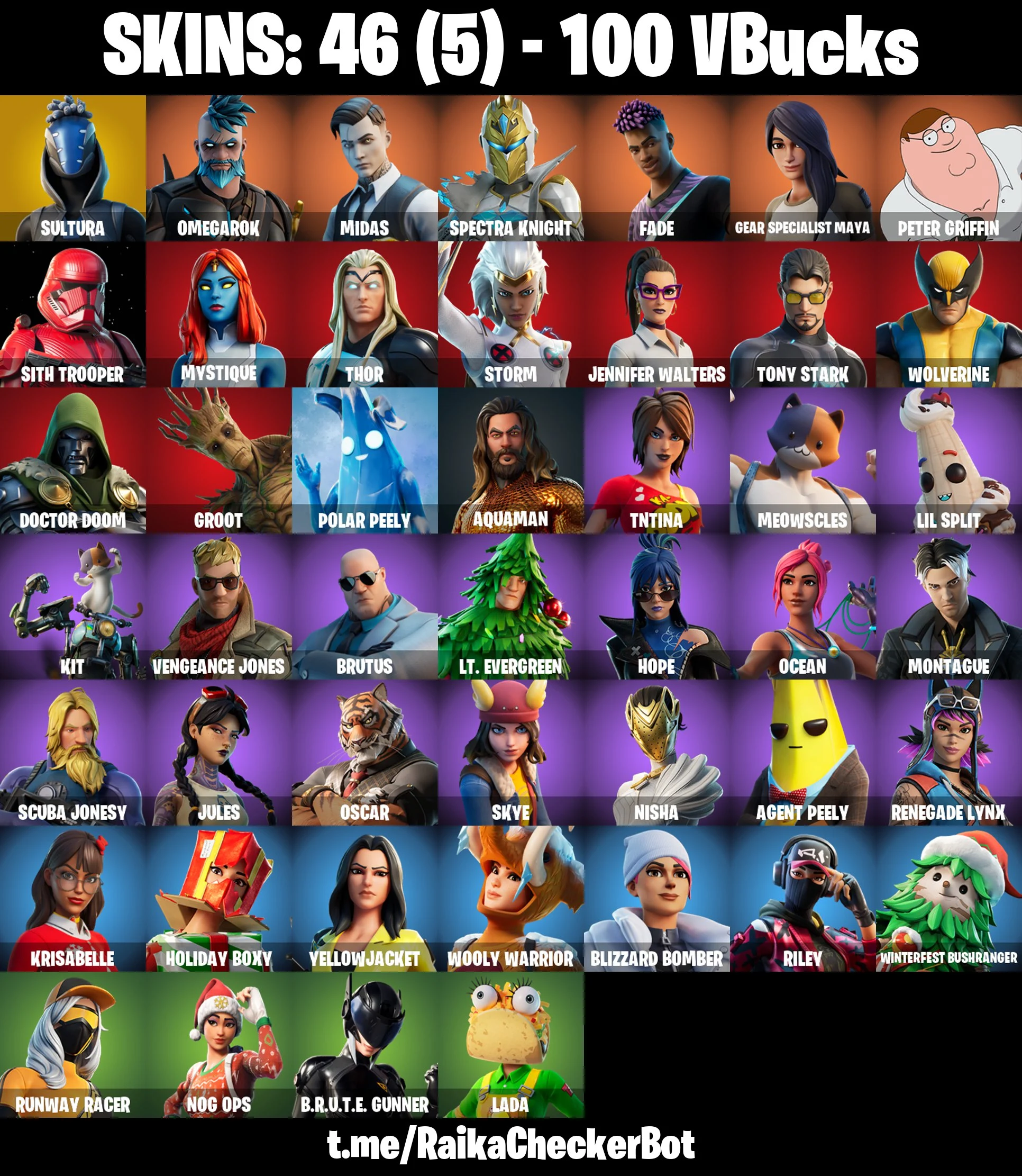 46 SKINS | Tony Stark | Nog Ops | B.R.U.T.E. Gunner | Midas | Jules | Jennifer Walters | Kit | [PC/PSN/XBOX] | 100 VB