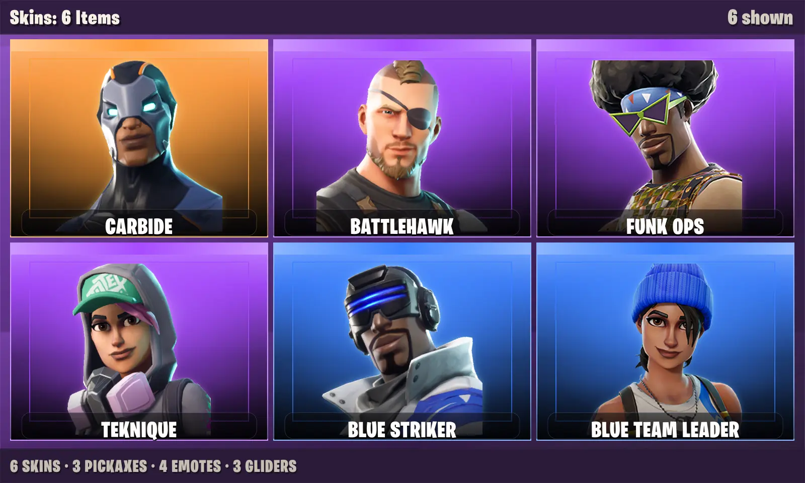 ⭐️ 6 Skins | Blue Team Leader + Blue Striker + Carbide + Funk Ops + Battlehawk + Teknique | 850 VB