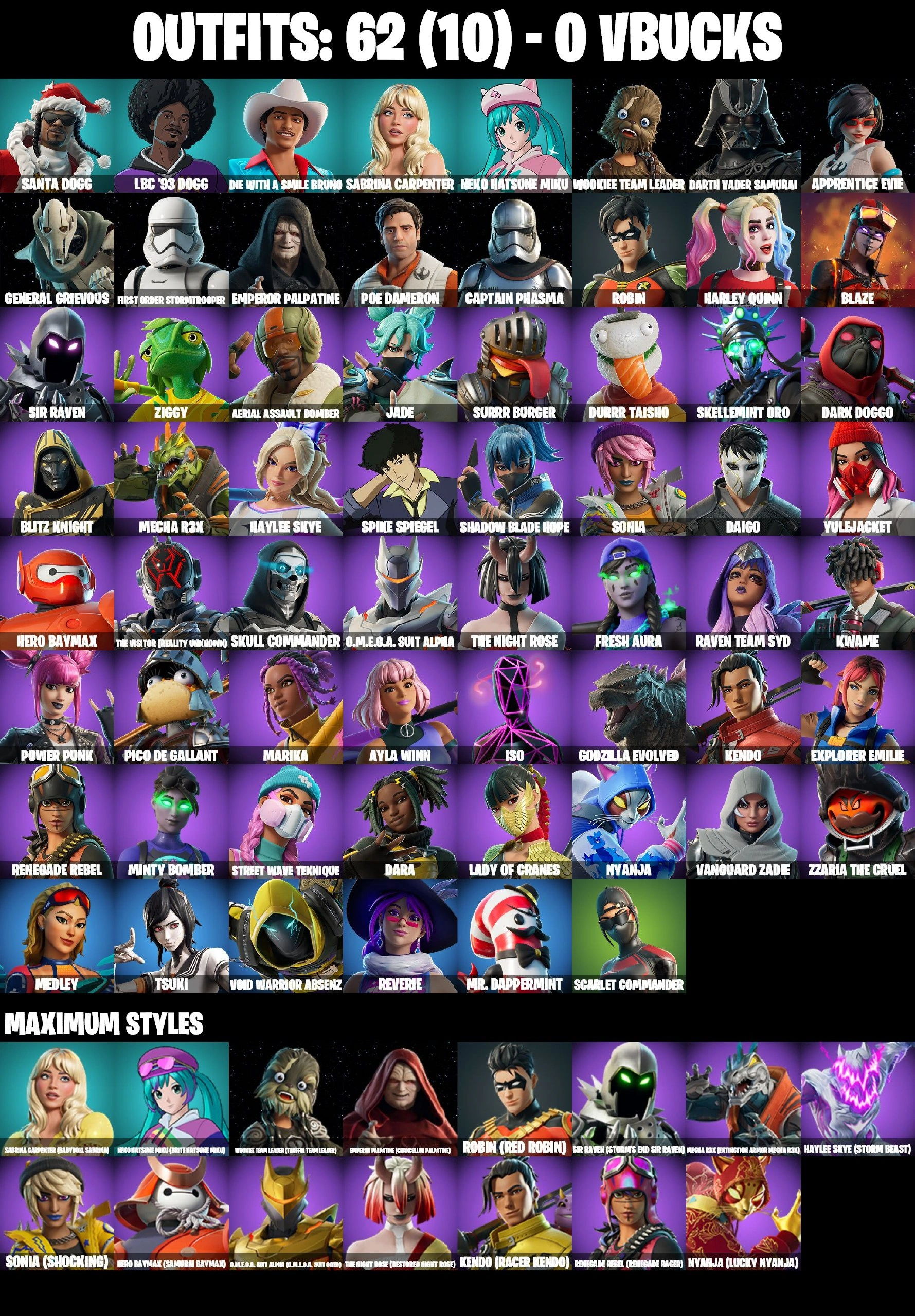 ❤️ 62 SKINS ❤️ EMPEROR PALPATINE MAX ❤️ WOOKIE TEAM LEADER MAX ❤️ DARTH VADER SAMURAI ❤️ APPRENTICE EVIE ❤️ GENERAL GRIEVOUS ❤️ FIRST ORDER STORMTROOPER ❤️ POE DAMERON ❤️ CAPTAIN PHASMA ❤️ NEKO HATSUNE MIKU MAX ❤️ SPIKE SPIEGEL