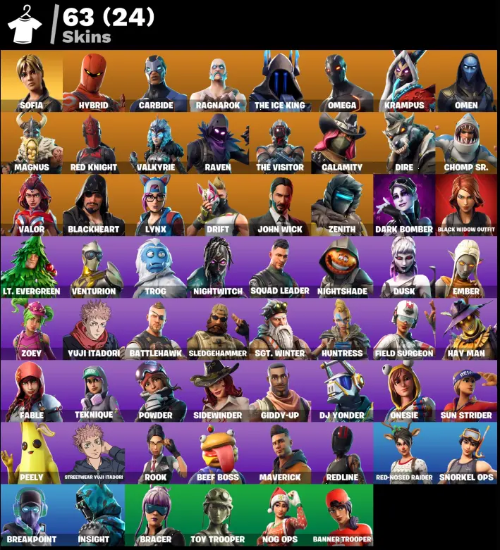 🔥 63 Skins | Red Knight, Valkyrie, The Ice King, Omega & More | 1250 VB 🔥