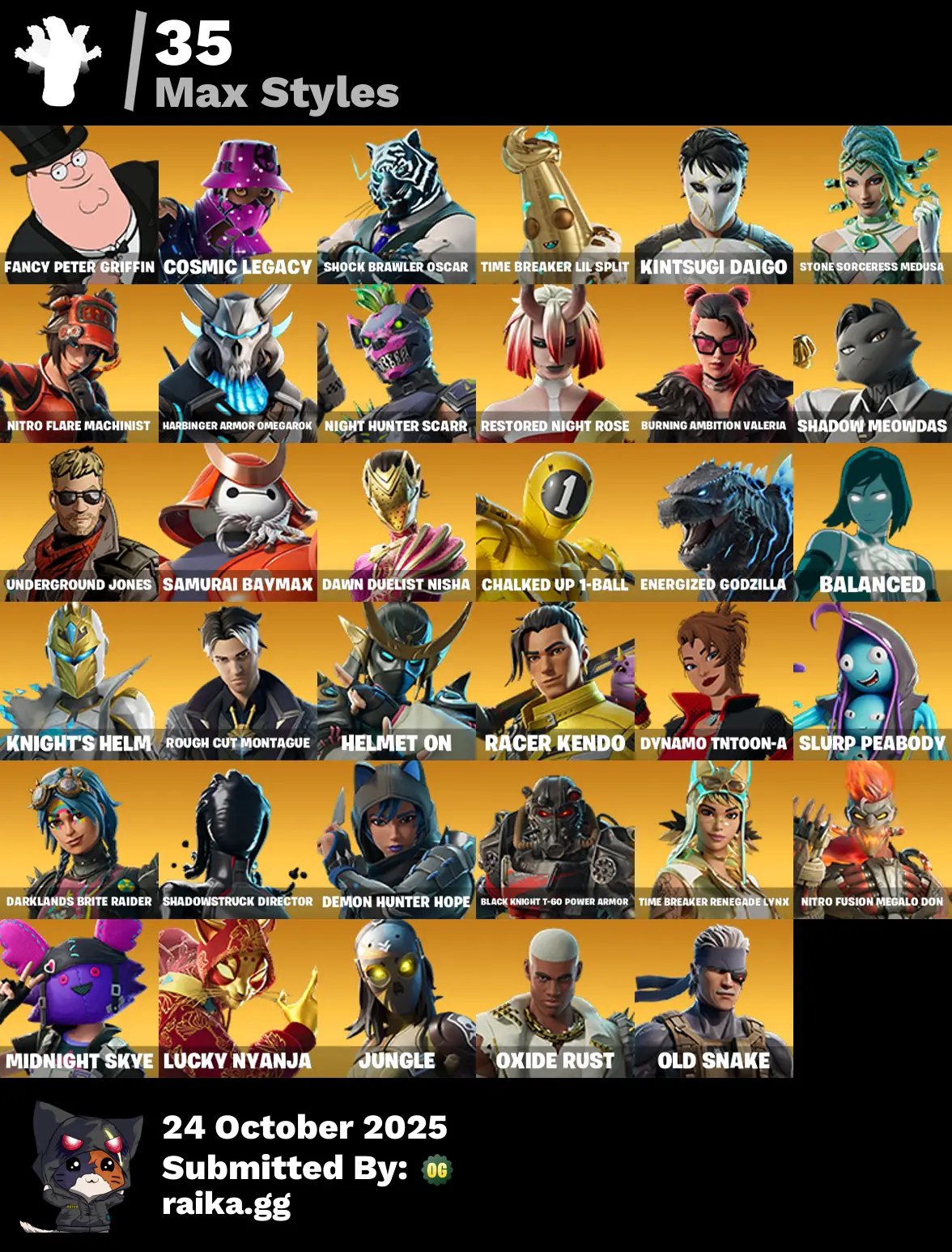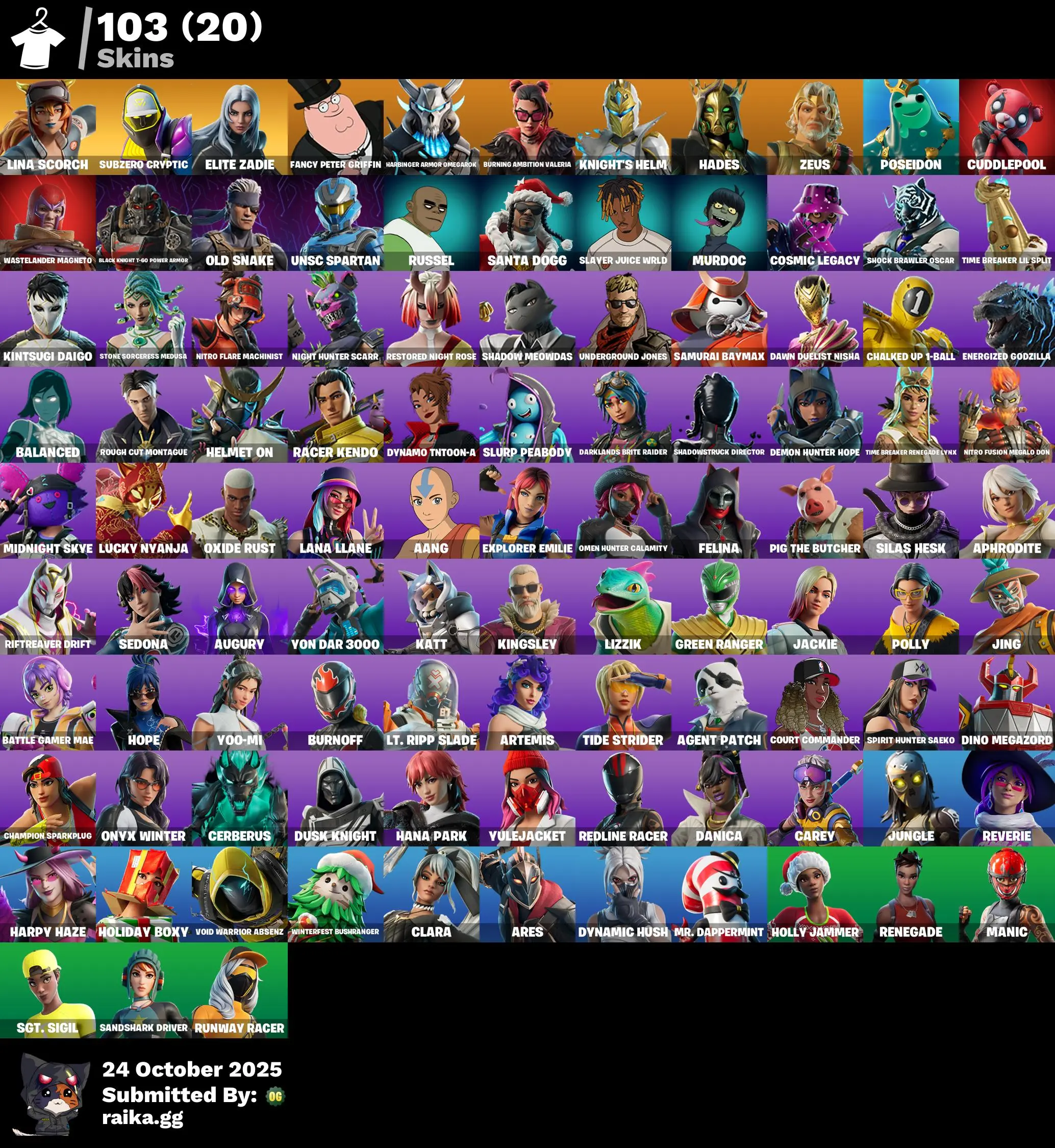 95 skins | T-60 Power Armor🎃Wastelander Magneto🎃Hades🎃Lina Scorch🎃Elite Zadie🎃Zeus🎃Solid Snake🎃Spectra Knight🎃Valeria🎃Court Commander🎃Santa Dogg🎃Cuddlepool🎃Omegarok🎃Poseidon🎃Peter Griffin🎃Subzero Cryptic🎃Slayer Juice WRLD🎃Danica D5184