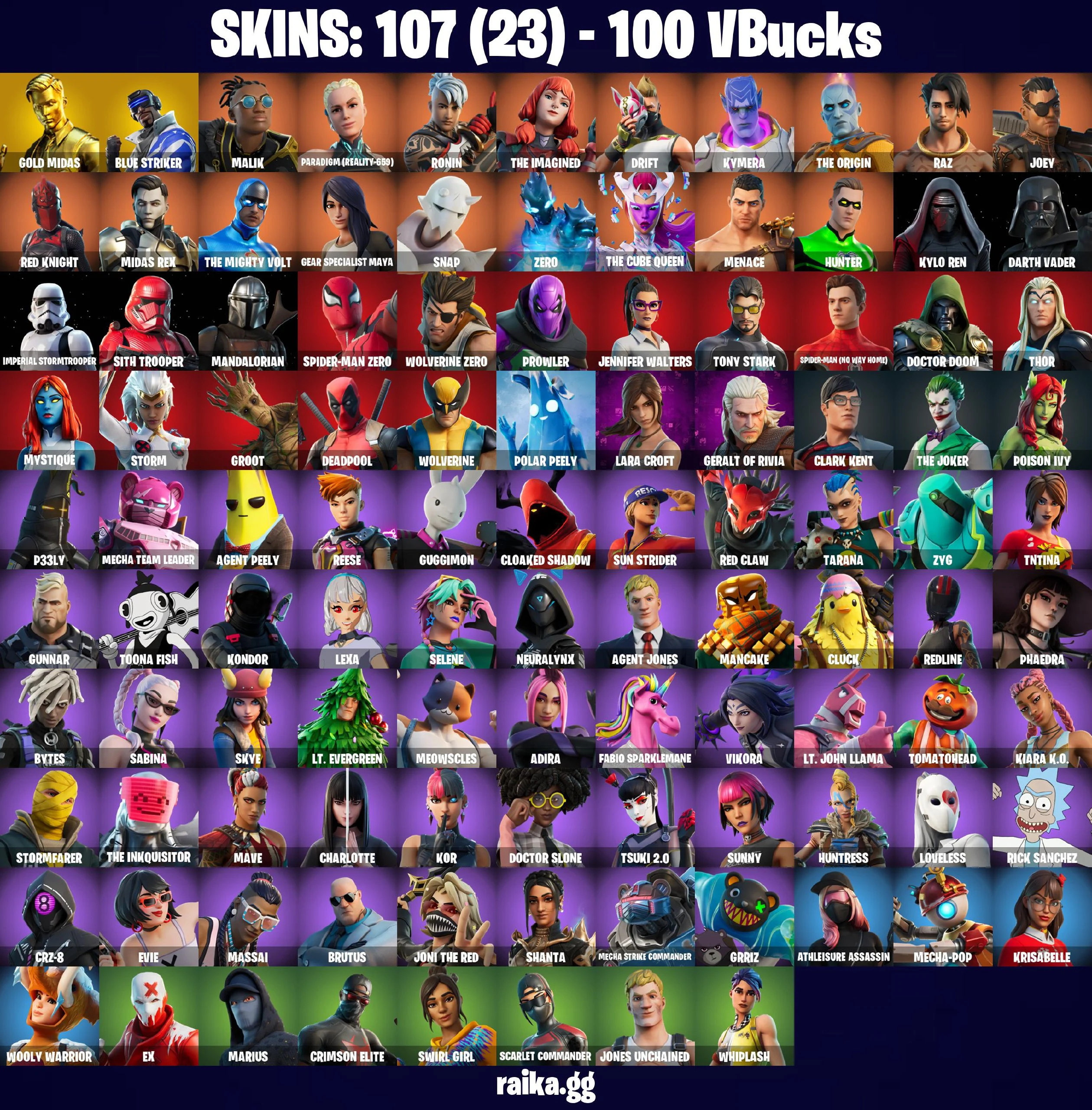 ๐ดโฆ๏ธ BEST ACCOUNT โฆ๏ธ๐ด 107 skins ๐ Gold Midas ๐ Blue Striker ๐ Malik ๐ Paradigm (Reality-659) ๐ Ronin ๐ The Imagined ๐ Drift ๐ Kymera ๐ The Origin ๐ Raz ๐ Joey ๐ Red Knight ๐ Midas Rex ๐ The Mighty Volt ๐ PC\PSN\XBOX\SWITCH ๐