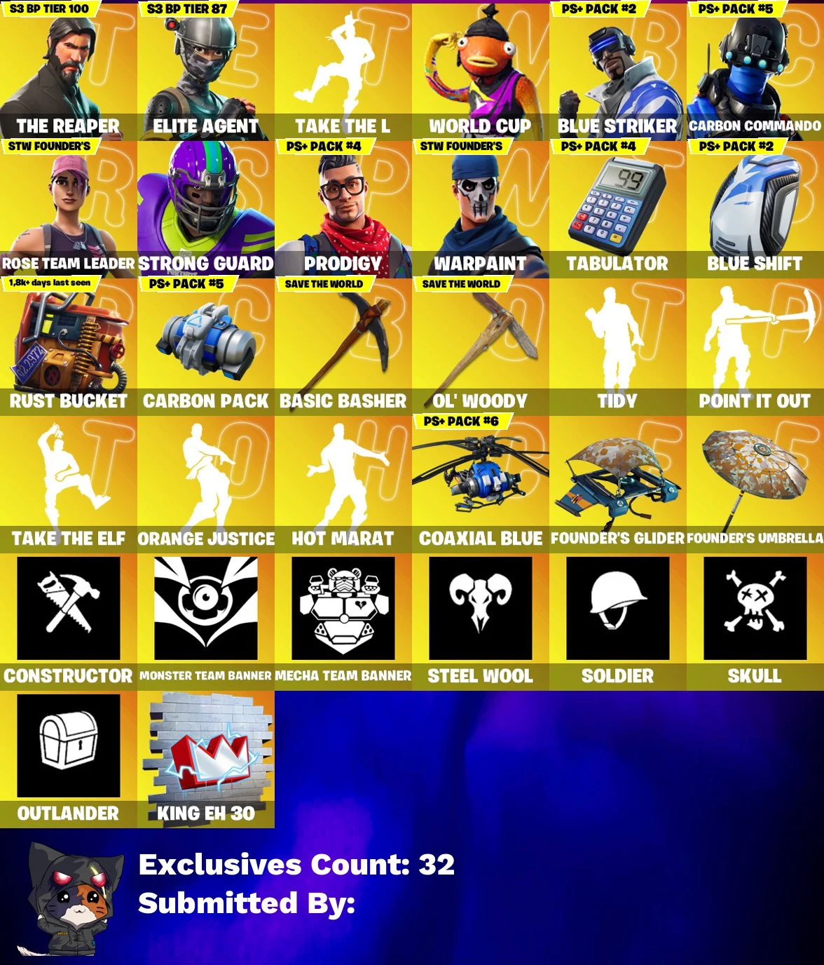 💥🌟 EMAIL CAN CHANGE 🌟💥 124 SKINS 💎 The Reaper 💎 Take The L 💎 Elite Agent 💎 WORLD CUP 💎 Blue Striker 💎 Strong Guard 💎 Prodigy 💎 Valor 💎 Zeus 💎 Ragnarok 💎 Drift 💎 Lynx 💎 Peter Griffin 💎 OG STW 💎 FULL ACCESS 💎