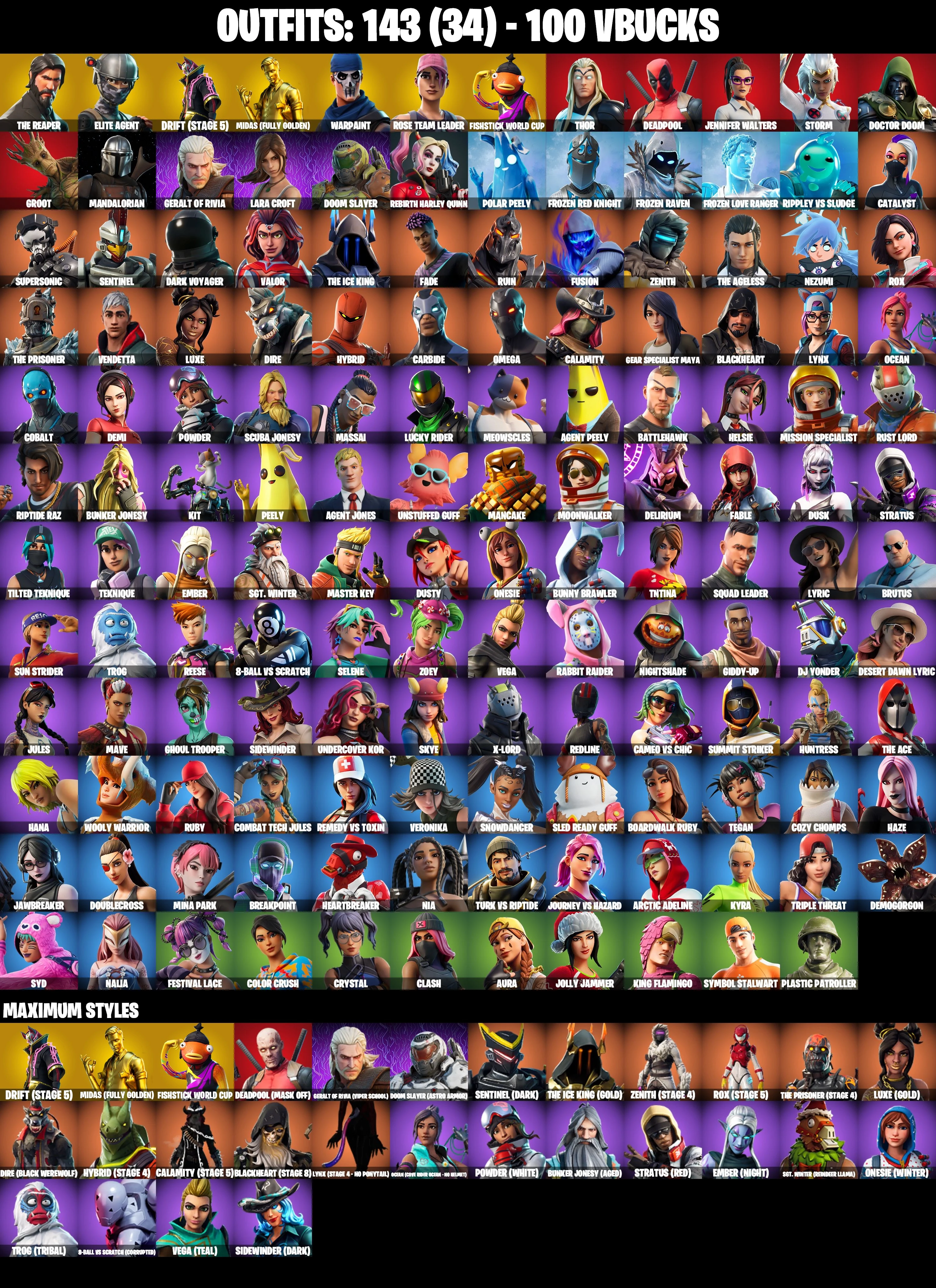 [ALL PLATFORMS] โก 143 SKINS ๐ FISHSTICK WC ๐ THE REAPER ๐ HOT MARAT ๐ OG STW ๐ TAKE THE L ๐ RAMBUNCTIOUS ๐ TIDY ๐ TAKE THE ELF ๐ MIDAS